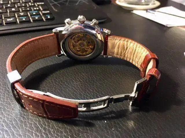 Sus indices y agujas azules sobre fondo blanco y su vista parcial del movimiento lo hacen mas que atractivo.