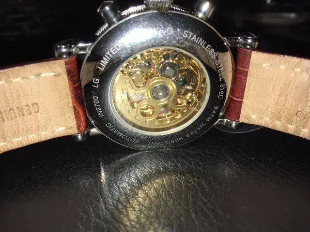 Movimiento: Automático con remonte manual y parada de segundero.