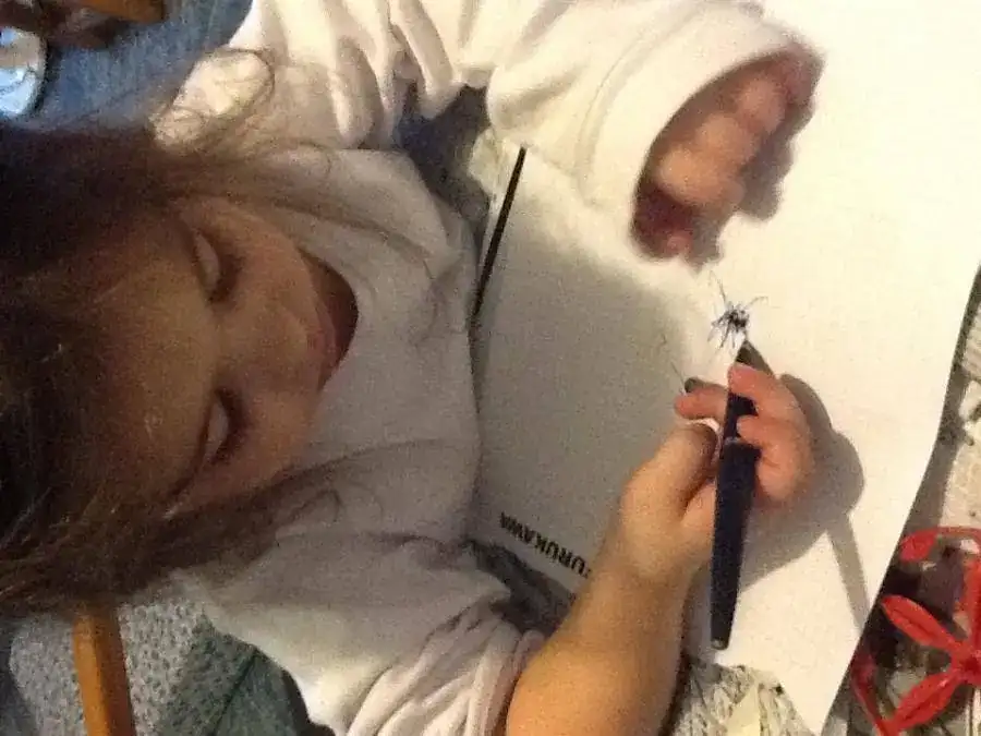 Hoy después de mucho tiempo entinte una Parker 45 con Azul/Negro Quink, la cual pertenecía a mi esposa cuando cursaba el secundario. Les dejo unas fotos de mi hija Belén haciendo sus primeros trazos con tinta.