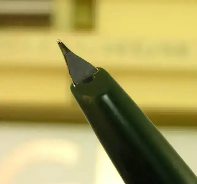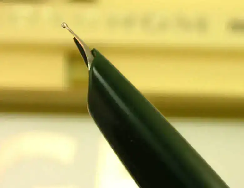 Trazo fino. Plumin de acero con comportamiento rígido IR4. No he querido entintarla, pero carga agua sin problema.
