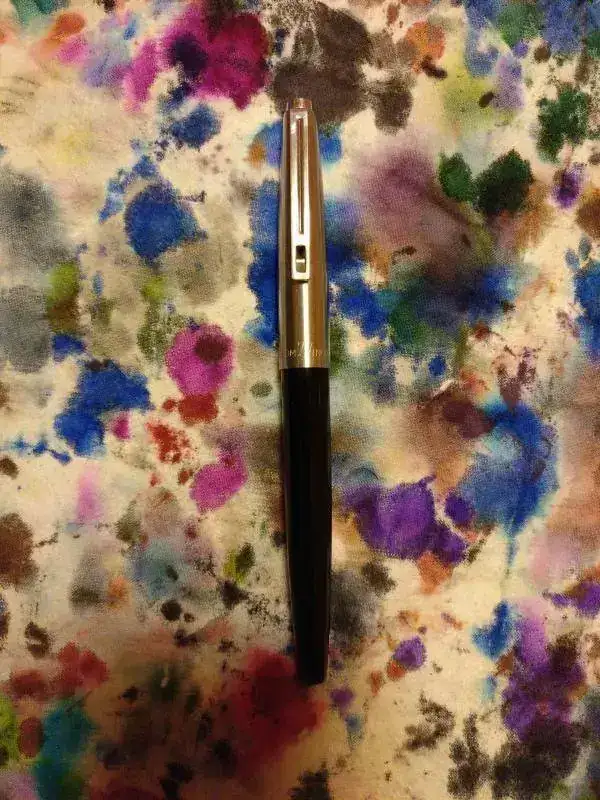 El cuerpo es de color negro con un anillo central metálico. El capuchón también es metálico y lleva grabado Inoxcrom 77.