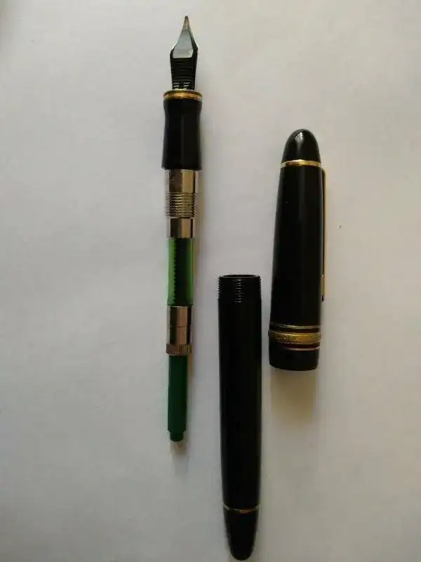 Con el debido permiso, pongo esta pluma en venta. Es original, pero con pérdidas de los dorados, incluso en el plumín. Está en mejor estado del que anuncio, pero para evitar confusiones... Pido 60 € gastos de envío incluidos a Península por correo certificado. Unas fotos: