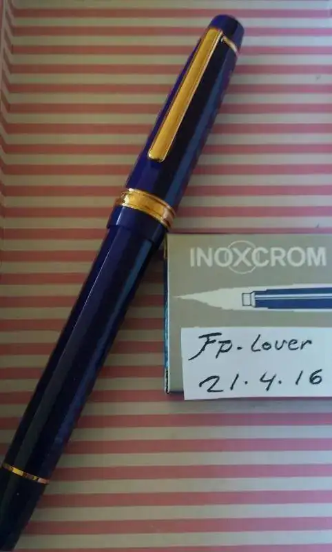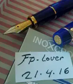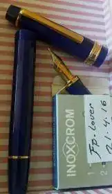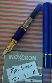 pluma estilografica inoxcrom corinthian azul, fabricada en la decada de los años 90. Clip, aros y plumin con un baño de oro de 23,6. El capuchon y el barril en resina azul de alta calidad. Plumin punto m. Utilizada en contadas ocasiones por lo tanto sin desgaste alguno en las partes metalicas o de resina. Va sin el estuche y sin el cargador de tinta. Funciona perfectamente con cartuchos de la marca, pelikan u otros.
