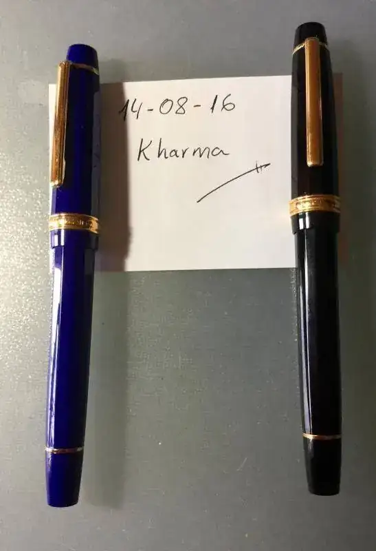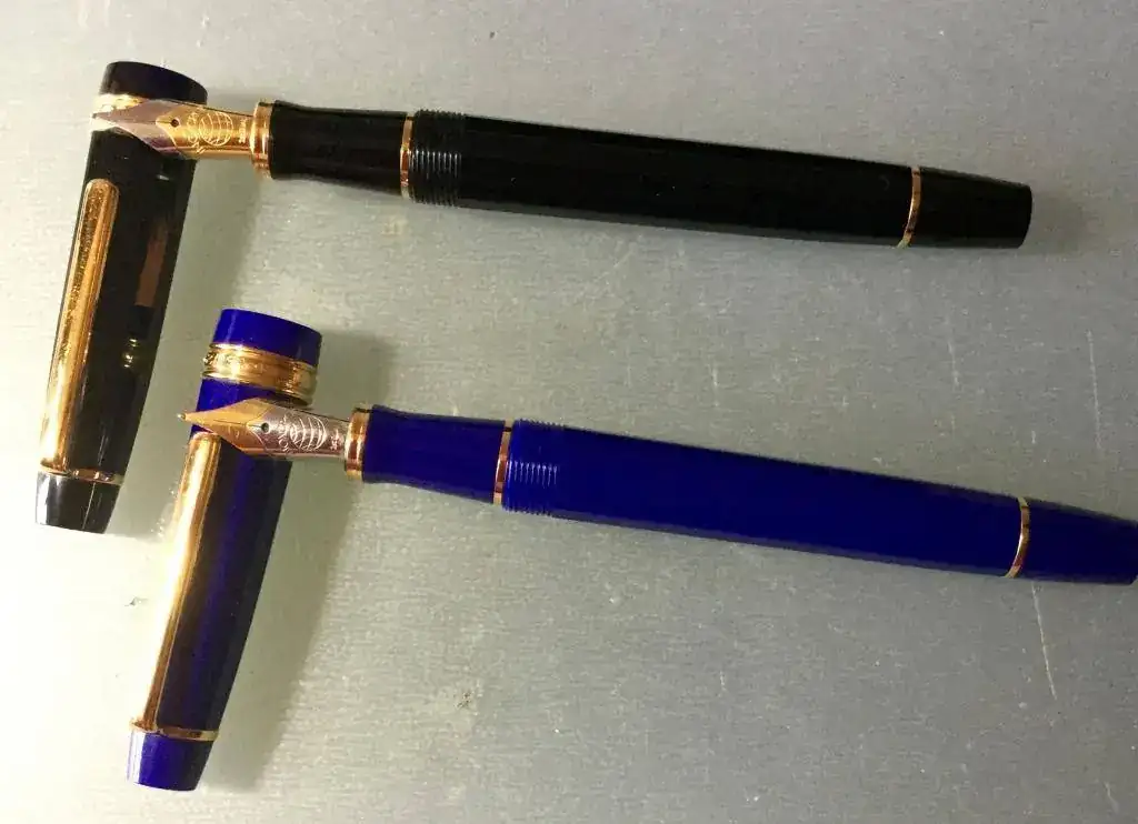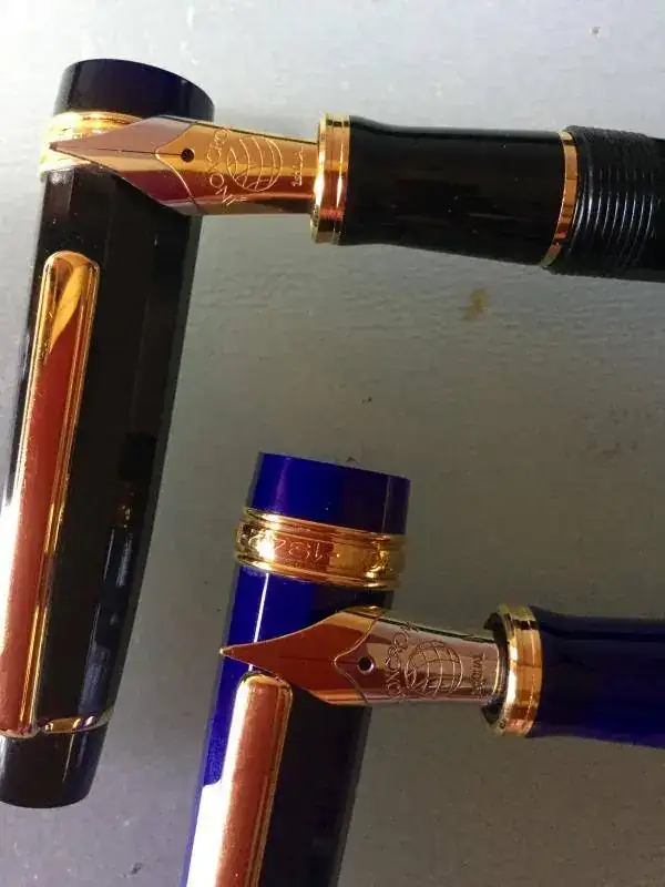 Las dos llevan plumín de acero bicolor, con punto M contenido y con buen flujo. Se han cargado un par de veces como mucho.