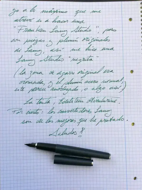 La tengo en ese mismo color, hace un par de años hubo fiebre por esa pluma, creo que bastantes nos hicimos con una de esas (alguno incluso la negra también)