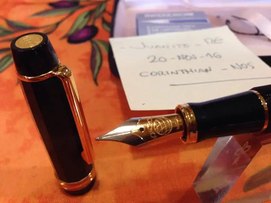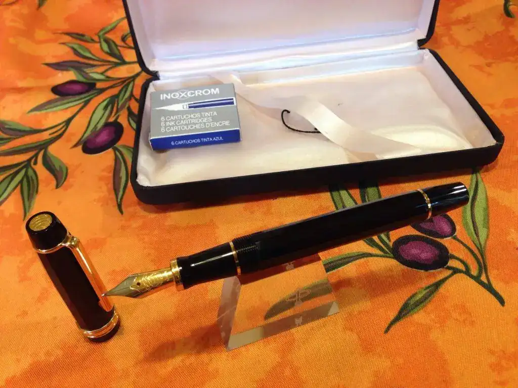 Tiene plumín de acero bicolor, punto M.