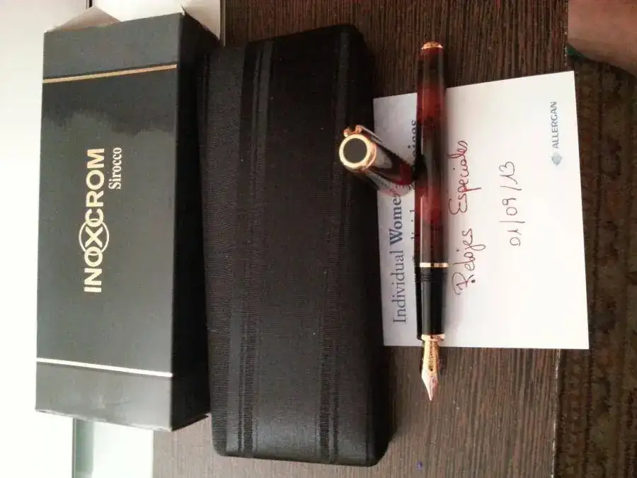 La vendo para que lleguen otras piezas. No tiene ni un mes, la recibí el 7 de agosto. Da gusto escribir con ella, es muy suave. Plumín M. Se manda con su estuche y su caja. Venía sin convertidor, pero la mando con el que le he comprado, uno de Visconti, que le va perfecto. Se envía por correo certificado. Pago por transferencia. Se vende por 75€.