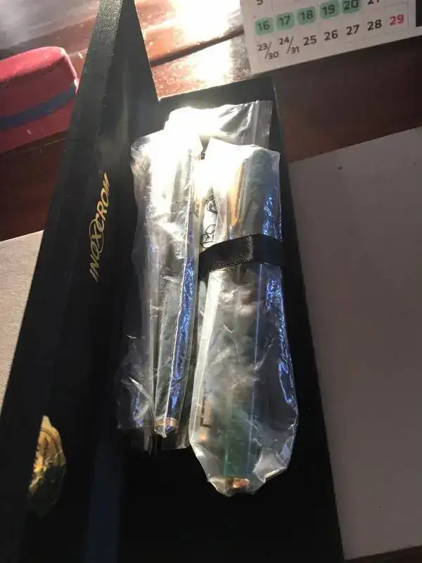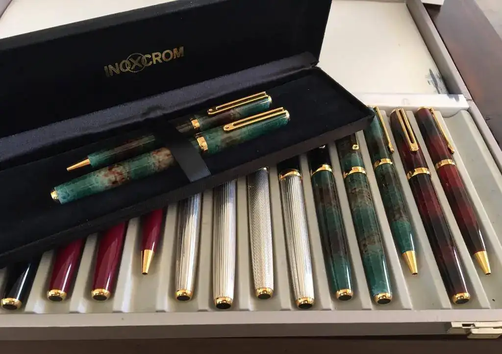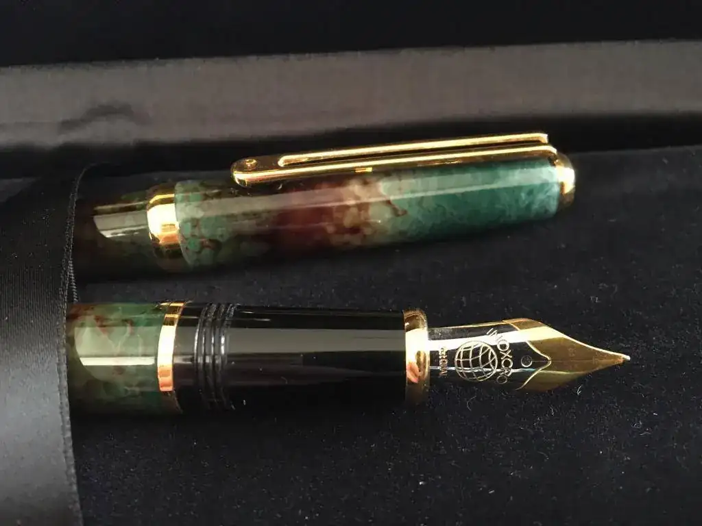 El plumín es un M, la tinta del bolígrafo es también M en color azul.