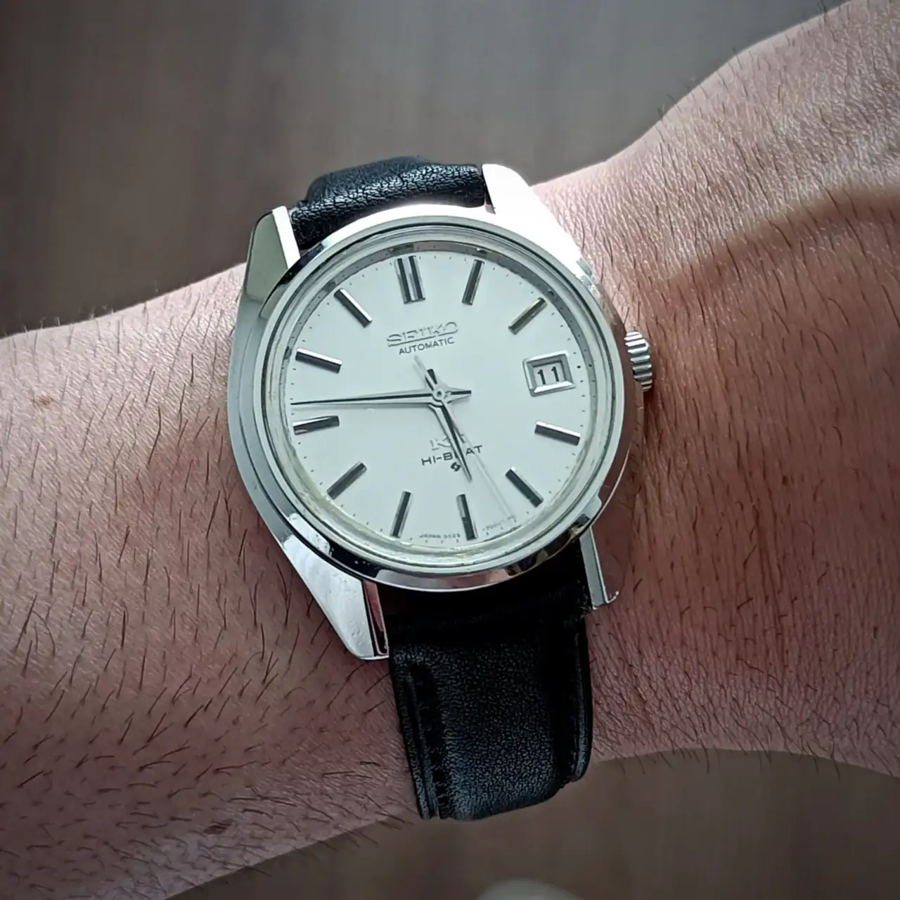 Y por último el mejor reloj que tengo. 55 años de reloj que funciona con una precisión increíble para la edad que tiene. Se nota que pertenece a los días de máximo esfuerzo por competir con el inicio de los cuarzos, antes de la desaparición de la marca. Su forma es como de diamante cuando la ves de lado y plana cuando la ves de frente. Una maravilla del diseño que traspasa el tiempo hasta los días de hoy.