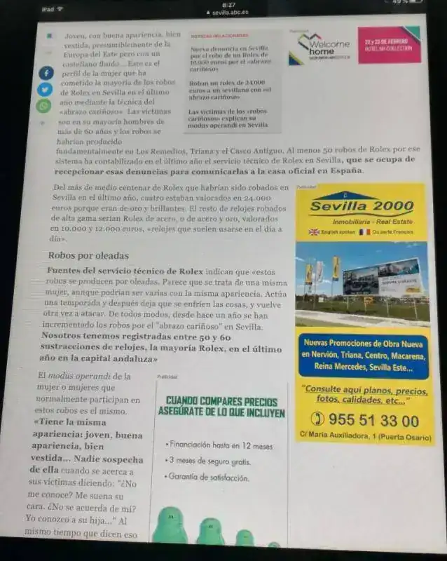 El pasado miércoles llego mi a casa en coche, mercedes ML (4x4 de hace 15 años), y entro en la rampa de acceso al garaje, llevo mi rolex submariner asomando por la muñeca, codo en ventanilla y mano creo que en volante. Estoy esperando que se abra la puerta y veo que por los + ó - 40 cm que hay entre la puerta del coche y la pared se me acerca alguien. Es una mujer de unos 30 años, arreglada, (pero un poco horterilla), Muy alegre y con buen castellano pero con acento centro europeo: