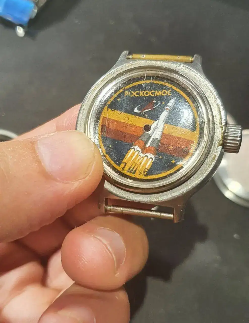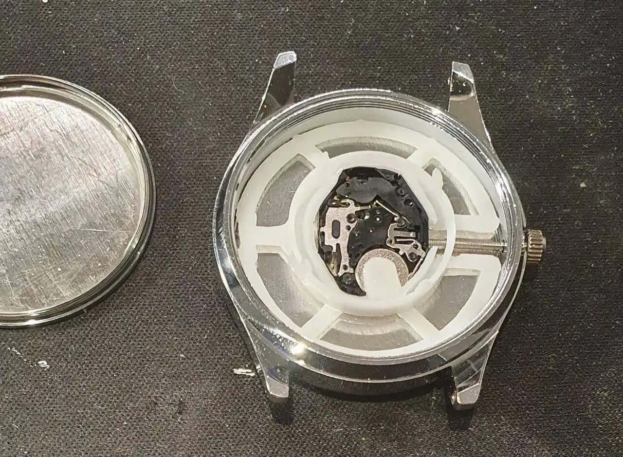 Tapa a rosca y cuarzo con bata llena de rebabas plásticas. Lo imaginable.