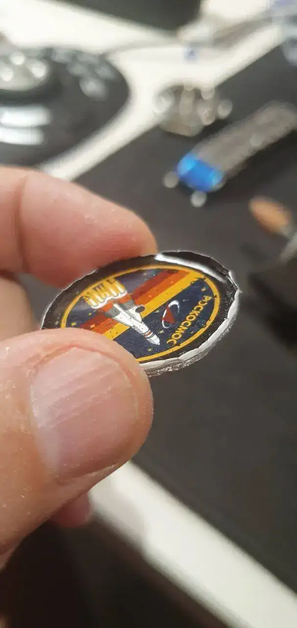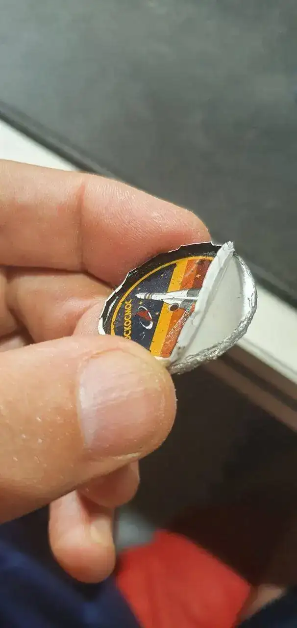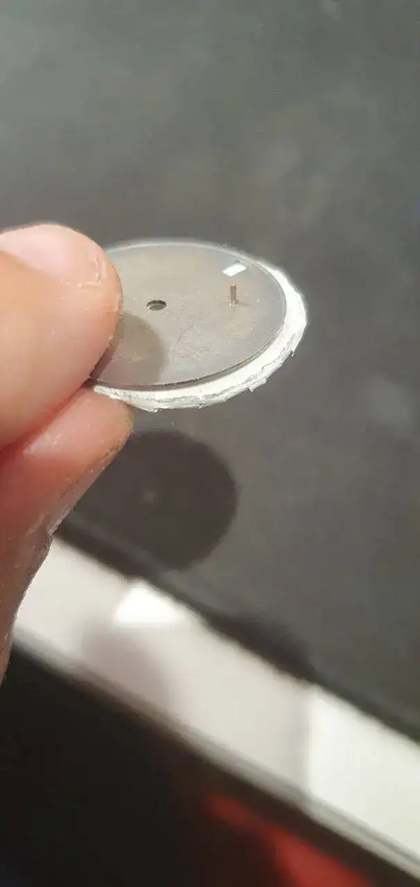 Primeros embates con la dremel, y veo que es una pegatina normalucha sobre una chapita de latón -o lo que sea- finita.