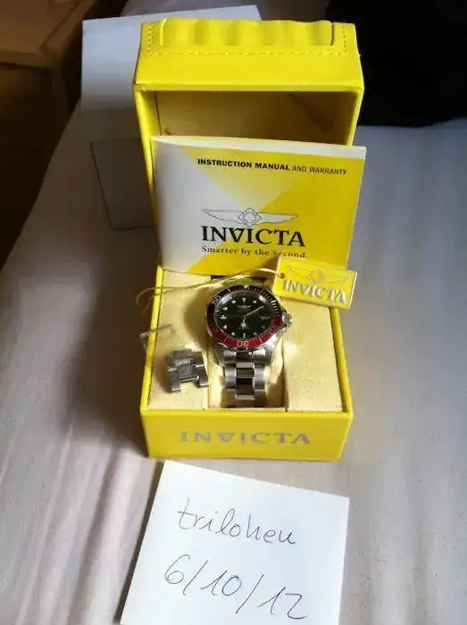 Pongo a la venta este Invicta Automatic Pro Diver 9403 comprado hace unos meses a Amazon.com de USA. El reloj funciona estupendamente, es ligero y adaptable. Su estado es de reestreno, es decir, a un 99% porque poco me lo he puesto. Las características son las siguientes: