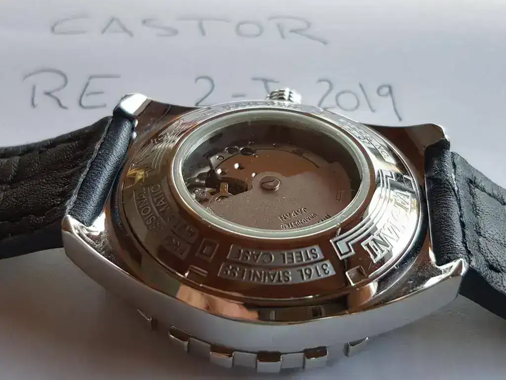 Como particularidad, este modelo viene con lupa que fue retirada. Buscando a contraluz se puede ver el cerco de la misma en la zona de la fecha.