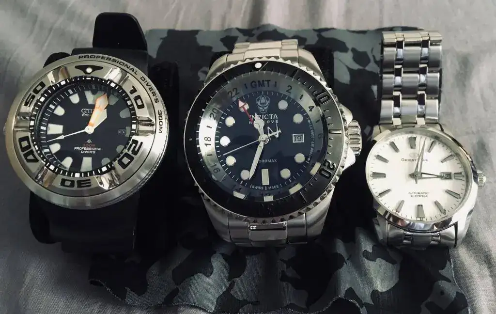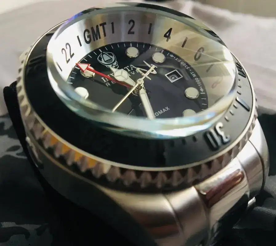 Hola, ya que ayer me disgustó mucho la caída que tuvo mi reloj, ya que podría haberme roto la tarima😂😂😂, le saque unas fotos más, y alguna comparado con el Ecozilla o un racional y elegante Orient Star. He pensado de cambiarle ese armis y ponerle una correa bund, así aligero peso, porque pesa... mirar un calibre auto que admita GMT, a ver qué encuentro BBB, y quitar el Quarzo que tiene y quizá ya que estamos mirar un dial estéril porque el diseño con esa calavera rara queda fatal, mirar agujas con mejor lumen, porque el que tiene es malo malo, no ilumina nada. No entiendo como aquí en España me dieron precio de un modelo como este, 700-800e y haciéndome un descuento, en una joyería que tenían Invicta...les dije que por Amazon salían a 100$ puestos en casa. Se quedaron con la boca abierta porque no lo sabían... alguien me aconseja? Gracias.
