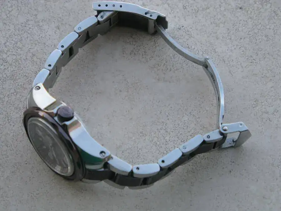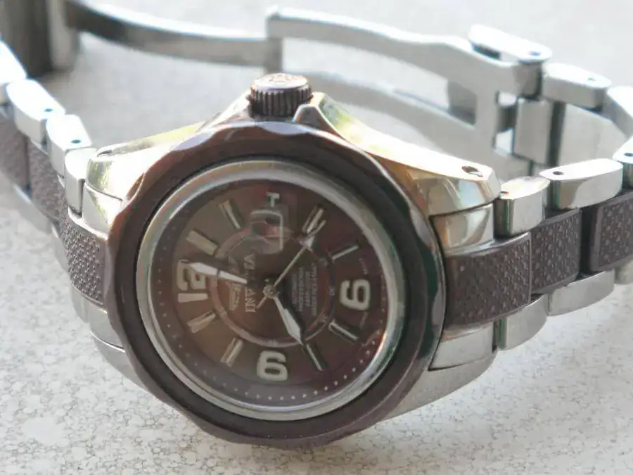 Lo primero, disculpas al moderador por mi error en la publicación anterior y gracias por permitirme corregirlo. Se vende el reloj del asunto, un diver de mujer, que compre para la mía hace dos años en USA (lo traje yo mismo) y que al poco tiempo perdió el disco del bisel (que le haría!!!) y no ha vuelto a usarse, está tal y como se lo quitó ella hace mucho tiempo. Prometo una limpieza a fondo antes de enviarlo. No tengo caja ni tarjeta de garantía porque han desaparecido, actualmente el reloj ha vuelto a mis manos tras mucho tiempo, y como ella no lo quiere pues lo vendo o cambio si hay alguna oferta que me interese (a mí que no a ella) El reloj es de acero bitono con esfera madreperla. El segundo color, del bisel y el armis, es un marrón oscuro parecido a la madreperla. Monta una maquinaria Miyota con fechador de pase rápido. Tiene zafiro en la esfera y tapa y lupa para la fecha. Las dimensiones son 34mm sin corona y 26mm la esfera (mediciones mías). Es WR 660ft/200m como reza en la esfera. El reloj es bonito para mi gusto...