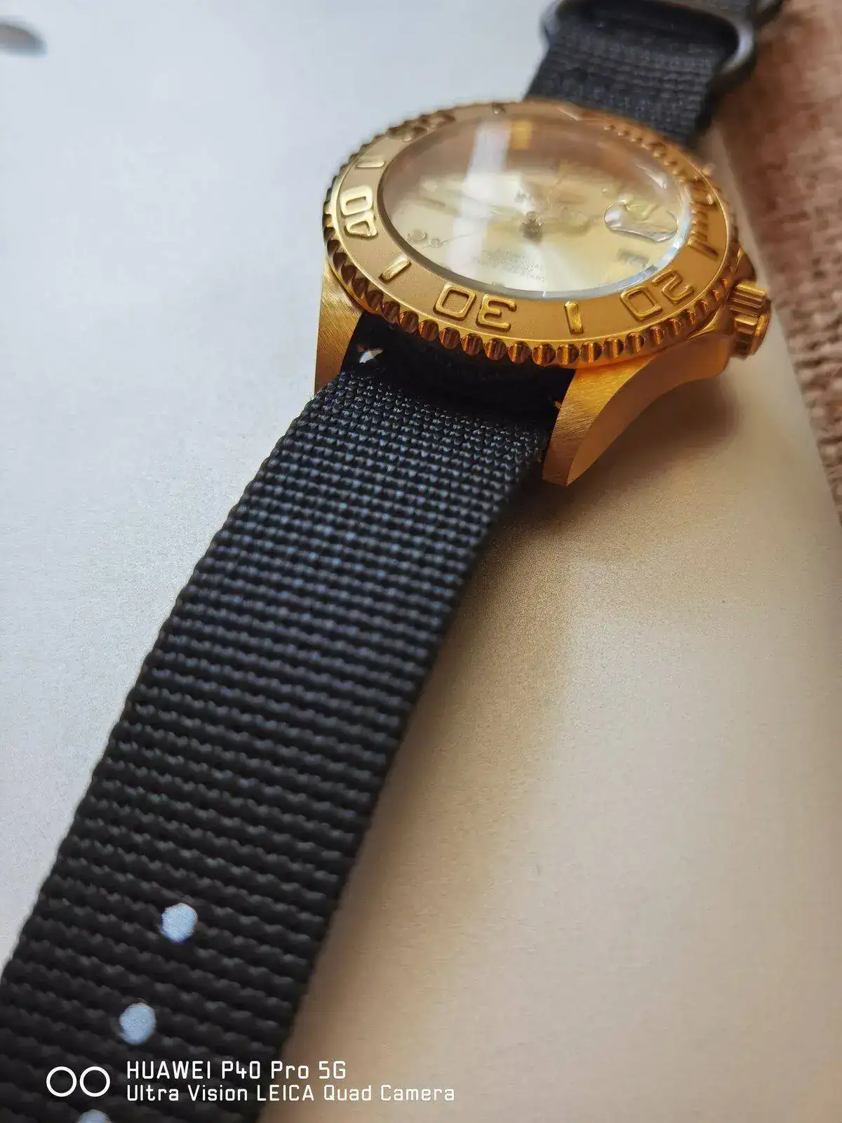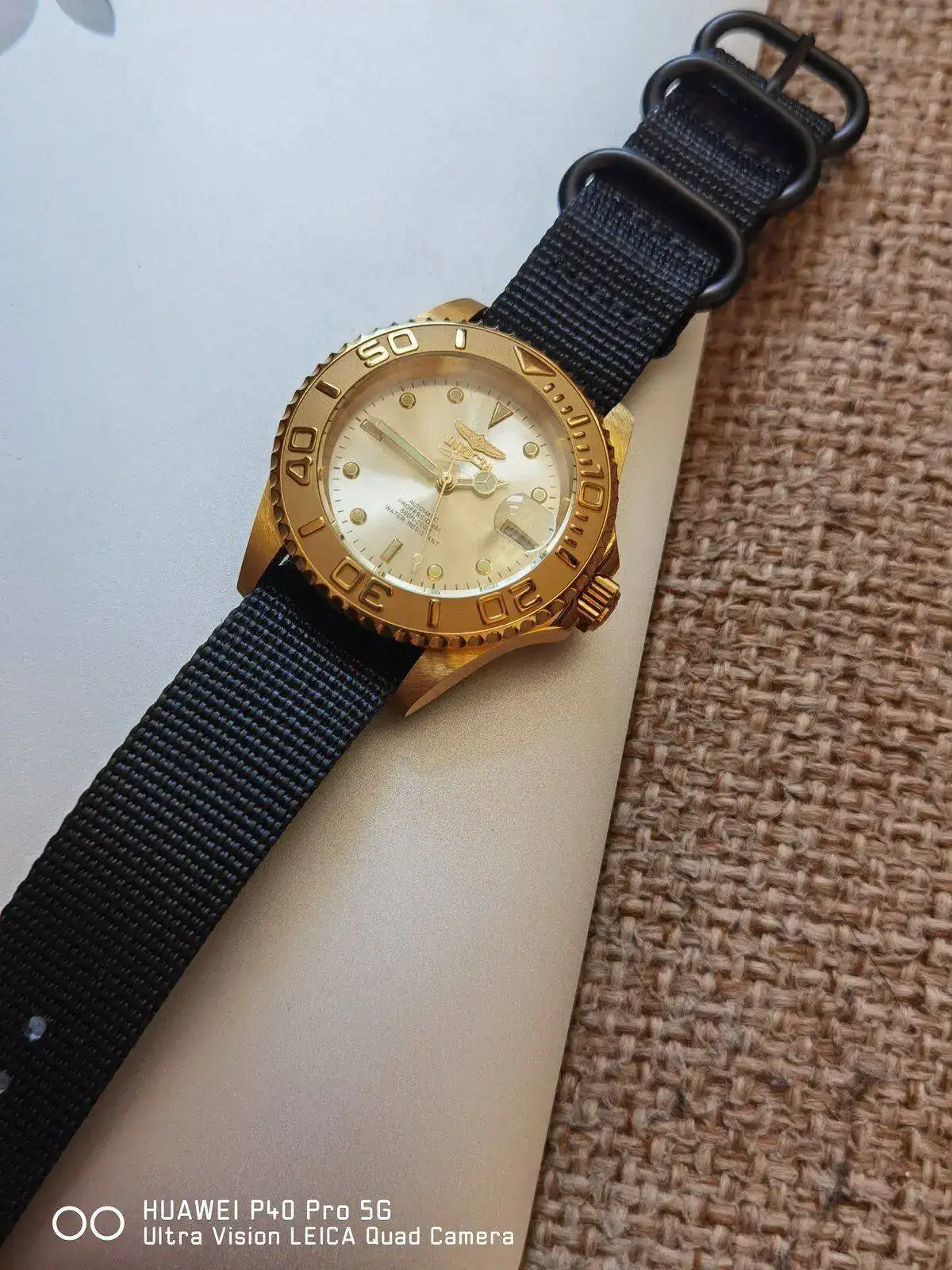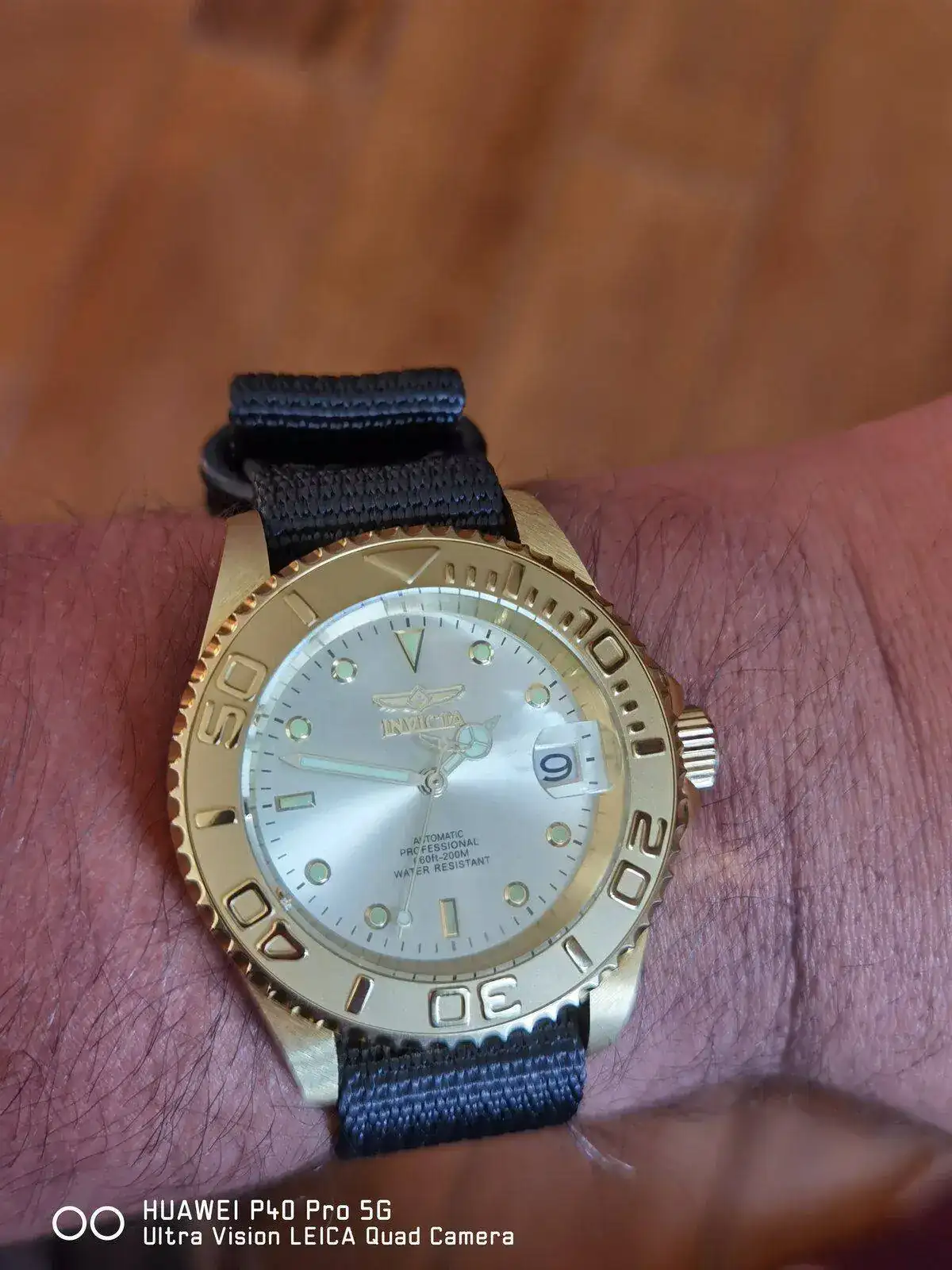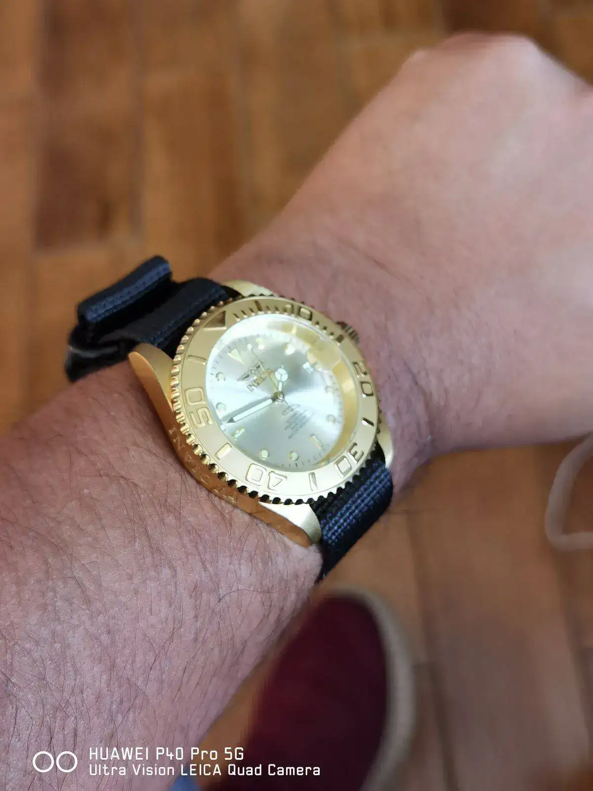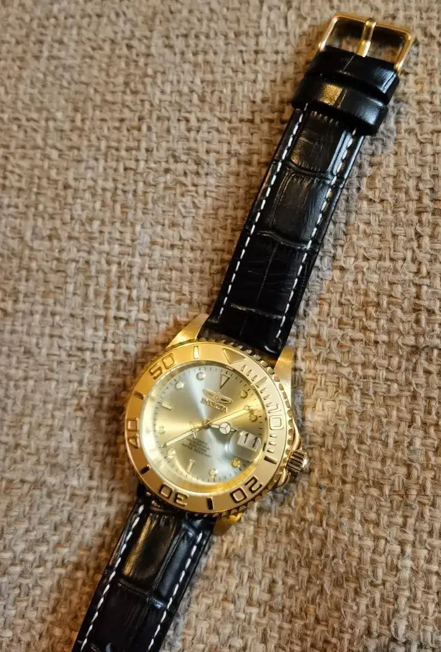Hace poco adquirí un Invicta 9010OB para mi colección y el armis dorado no me terminaba de gustar por lo que decidí recortar una NATO negra a RAF y la realidad es que ahora se ve precioso!