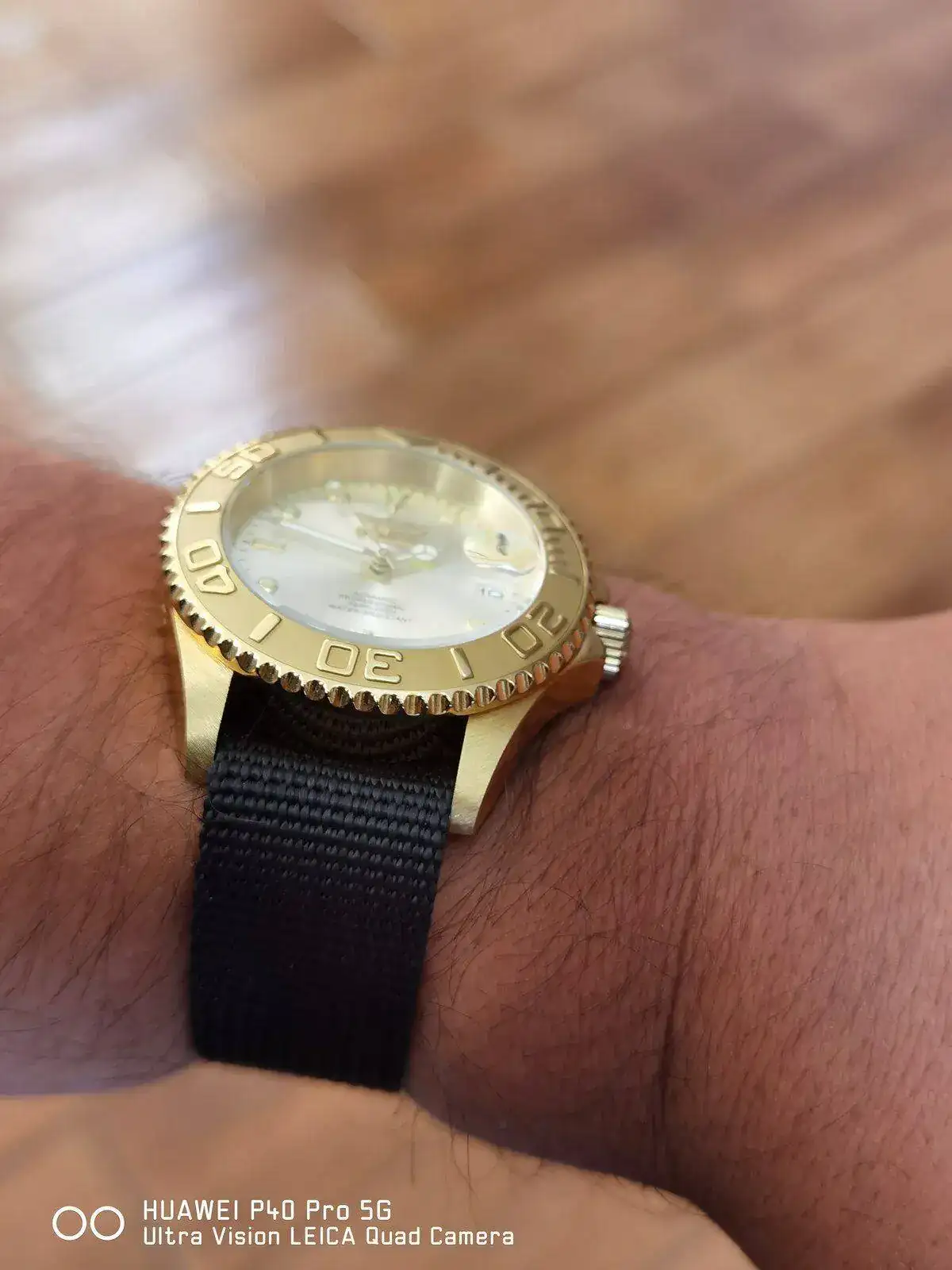 Gracias! Mejor sin el armis ese dorado de la caja con la carátula en champagne ya es mucho pero con algunas nato o cuero le va mejor. Que otro color de nato le queda?