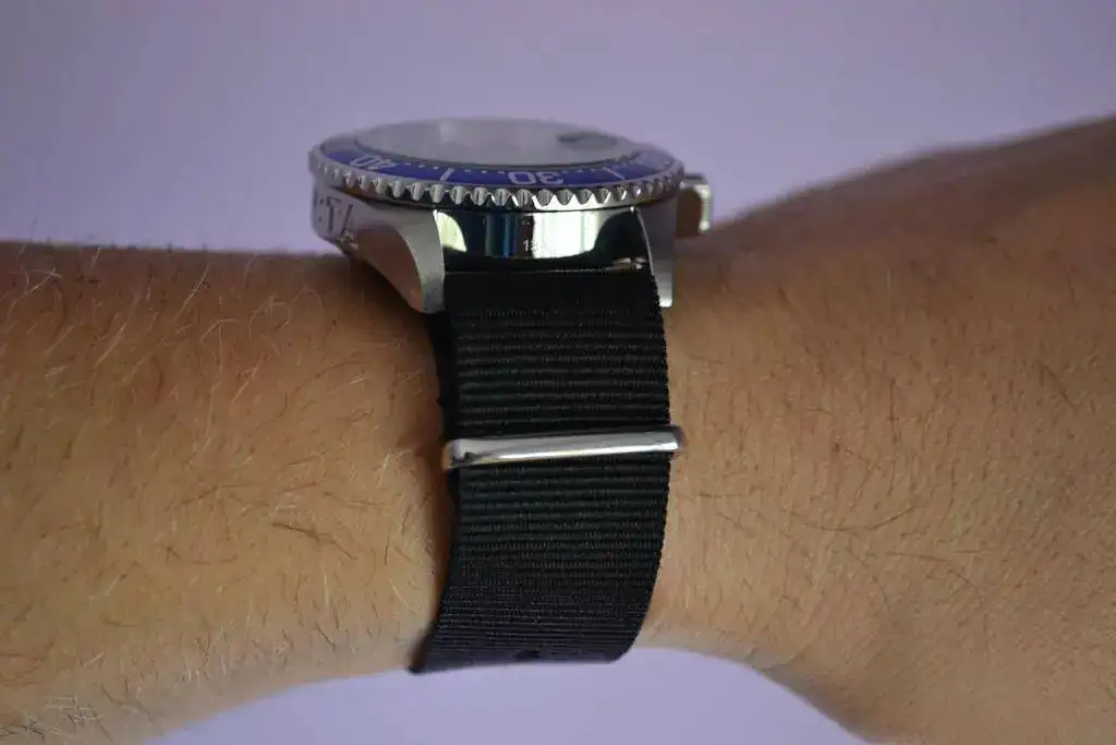 El reloj lo he usado una decena de veces, siempre con correas Nato de 22mm. En la imagen con la negra que incluyo en su venta, y que he usado 2 o 3 veces.