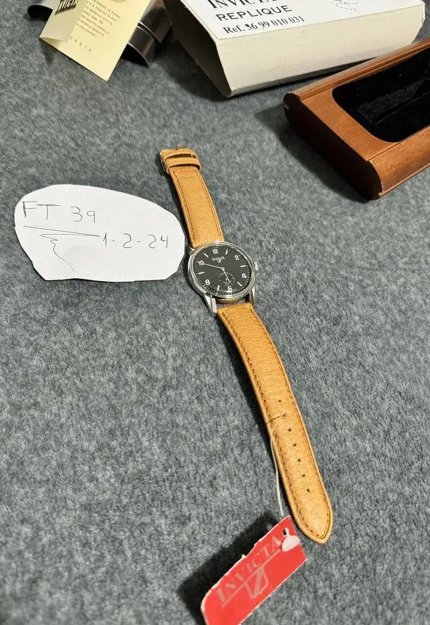 Vendo este Invicta de los años 90/00 (desconozco el año exacto, pero me inclino más por los 90), edición limitada a 1000 piezas, de cuando pertenecía a un grupo italiano (no es la Invicta actual, la cual compró los derechos a este grupo para el mercado europeo). El reloj está nuevo, con sus plásticos y etiquetas. Incluye su dotación completa, caja oficial de la Edición Limitada, y el cartón explicativo de la susodicha pieza. En su interior late el famosísimo ETA Peseux 7001, un calibre mecánico, que como se observa en el crono comparador, va finísimo pese a tener más de 1/4 de siglo. Tiene 38 mm de diámetro, un tamaño perfecto para cualquier muñeca. La correa es digna de elogio, un tacto suave que infunde la calidad con la que se solían hacer los relojes de antaño. Una pieza rarísima, e imposible de encontrar en este estado y con su dotación completa.