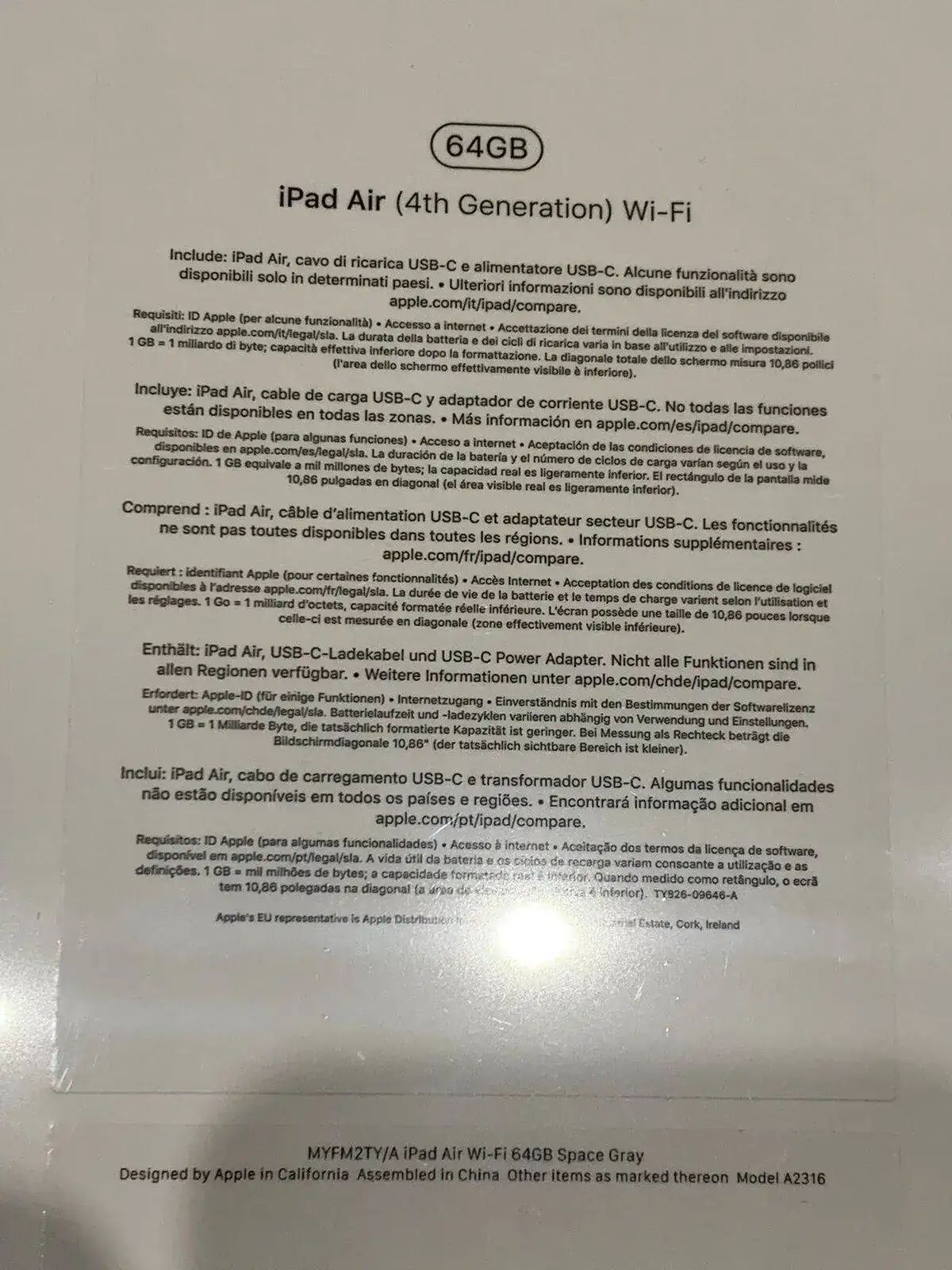 Vendo Apple IPAD AIR 4 GENERACION 64GB. 10.9" Space Gray + PENCIL, todo completamente nuevo a estrenar precintado sin abrir