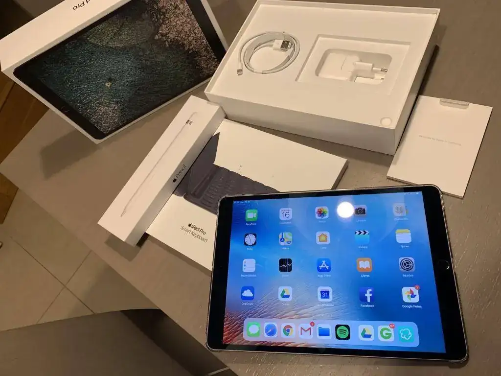 Vendo iPad Pro de 10,5 de 2017 . Es negra de 256gb . Va acompañada del Apple Pencil y smartkeyboard (su teclado) . Se entrega con sus cajas y el cargador sin uso .
