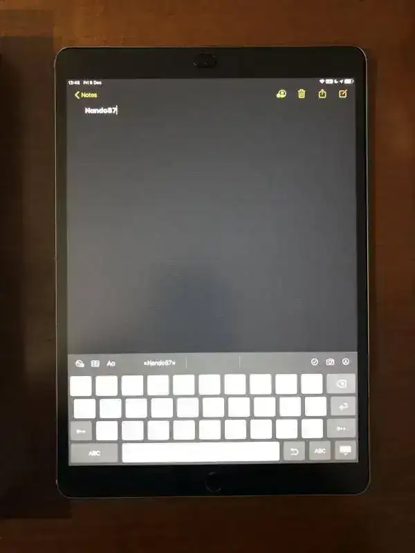Vendo este iPad Pro 64Gb Wifi Gris Espacial. Estado impecable salvo por una pequeña marca en la zona metálica del marco superior (como se aprecia en su propia fotografía).