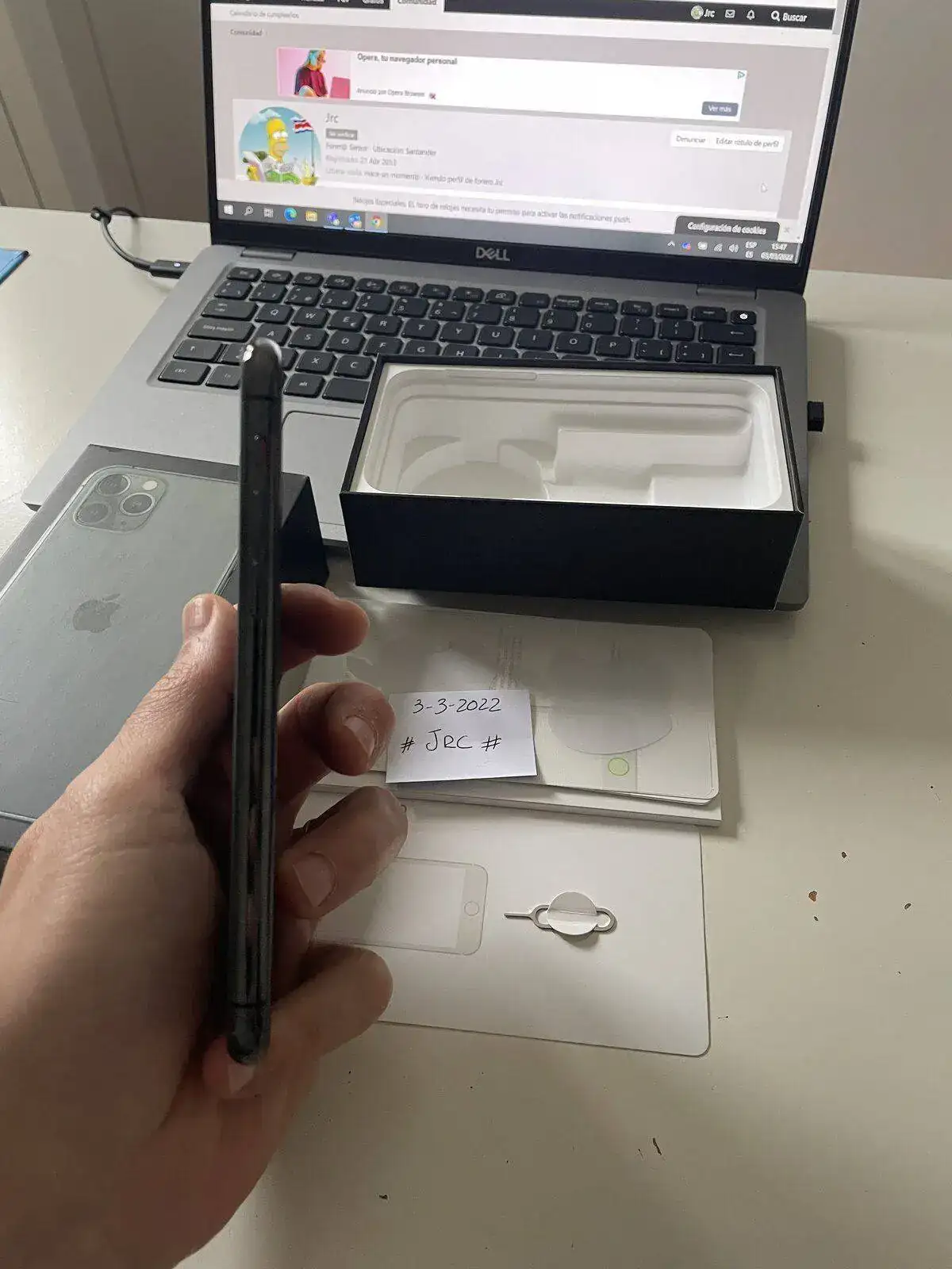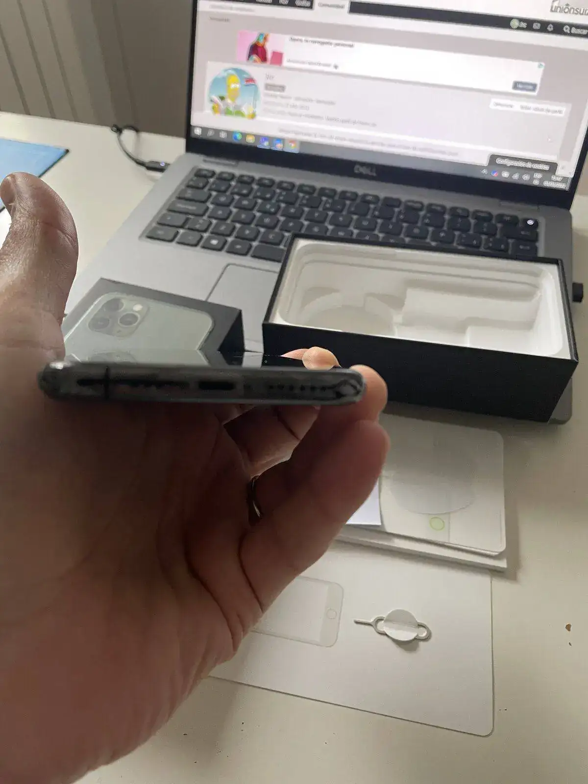 Saco a la venta mi antiguo Iphone 11 Pro Mignight Green de 256 GB. Tiene solo una semana de uso porque el seguro me lo ha remplazado por nuevo al 100%. Por ese motivo está perfecto sin ningún daño/rasguño, cámara perfecta y trasera limpia. Tiene puesto ya funda protectora de gel en la pantalla y funda con cubre cámara de regalo. Viene en la caja original, el pincho para la SIM, las pegatinas de Apple y cargador.