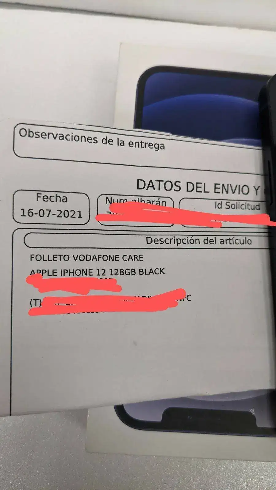 Buenos días, con permiso de la moderación, pongo en venta este iPhone 12 de 128 GB, color negro, factura de finales de julio 2021. 2 años de gtia. Batería 100%. Como nuevo, solo presenta una marquitas q se puede apreciar en la foto, el resto como recién desprecintado. Muchas gracias.