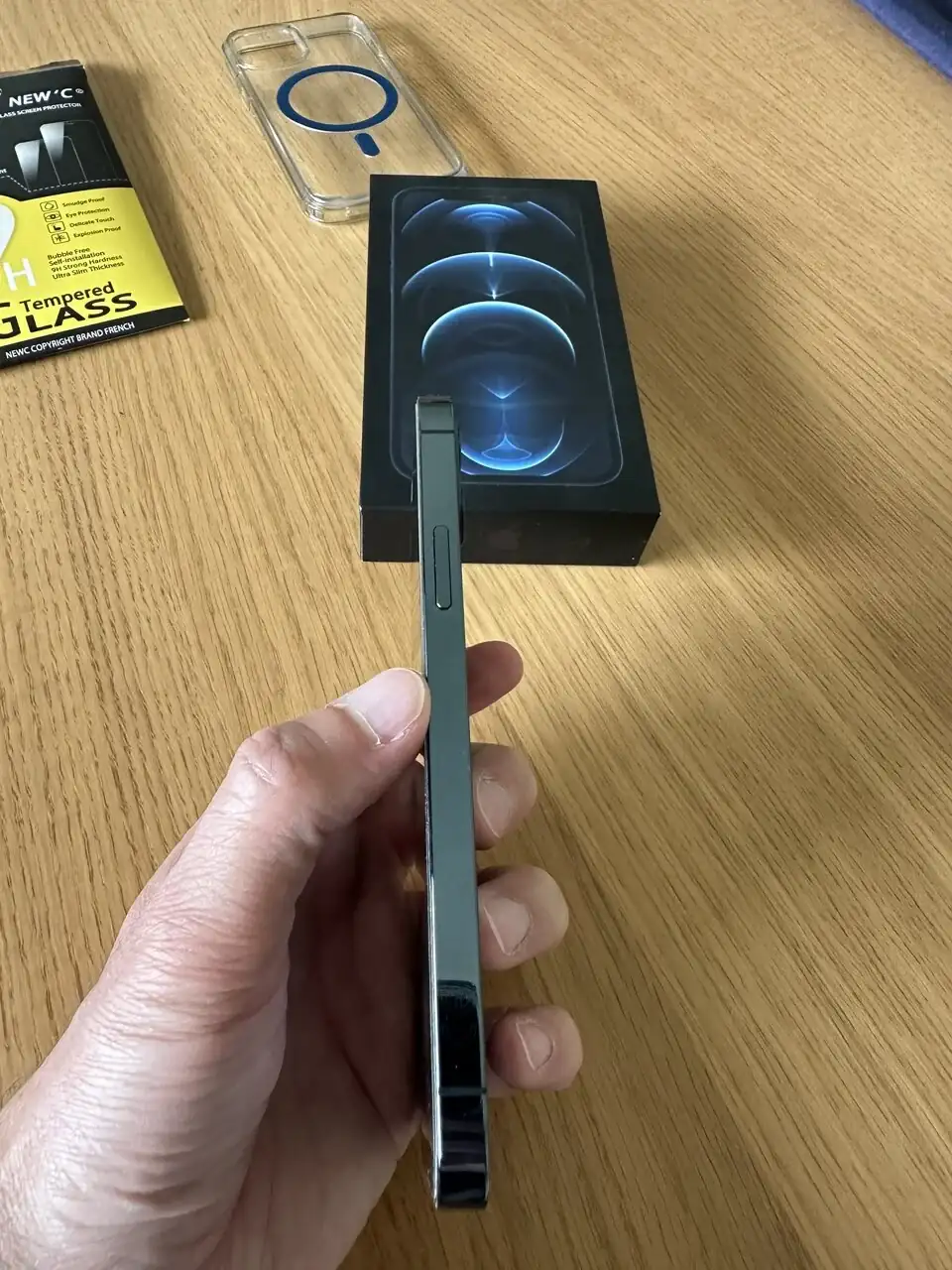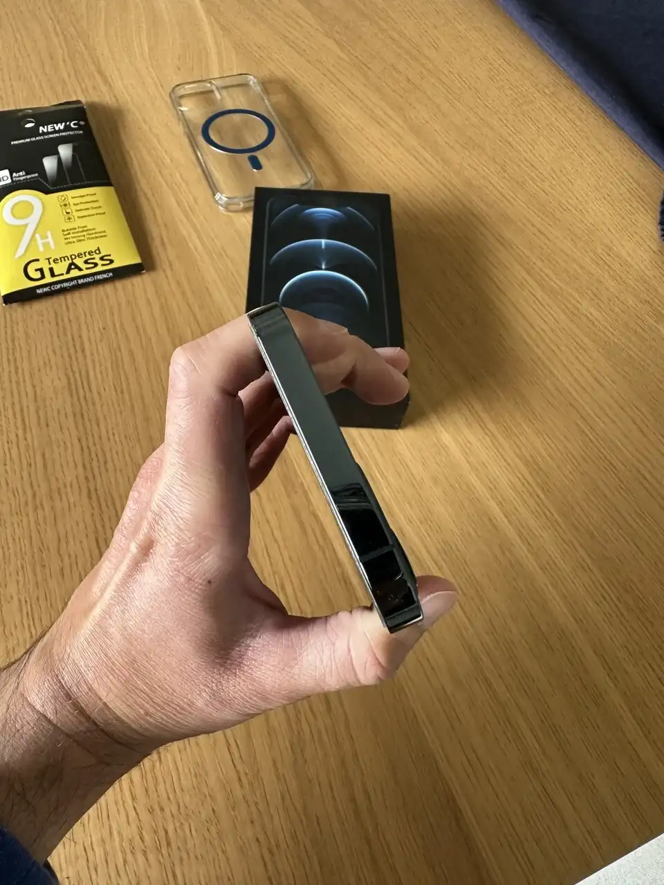 Pongo a la venta este iPhone 12 Pro en color azul y con una capacidad de 256gb, el teléfono está prácticamente nuevo, la salud de la batería está al 90% no tiene ninguna marca y la pantalla está impoluta ya que según se quitó el protector que trae nuevo se colocó la lámina que lleva ahora puesta, lo que se aprecia en las fotos es falta de adherencia de la actual lámina protectora por lo que se regala también una sin usar y una funda Spigen con MagSafe además de su cable de carga.