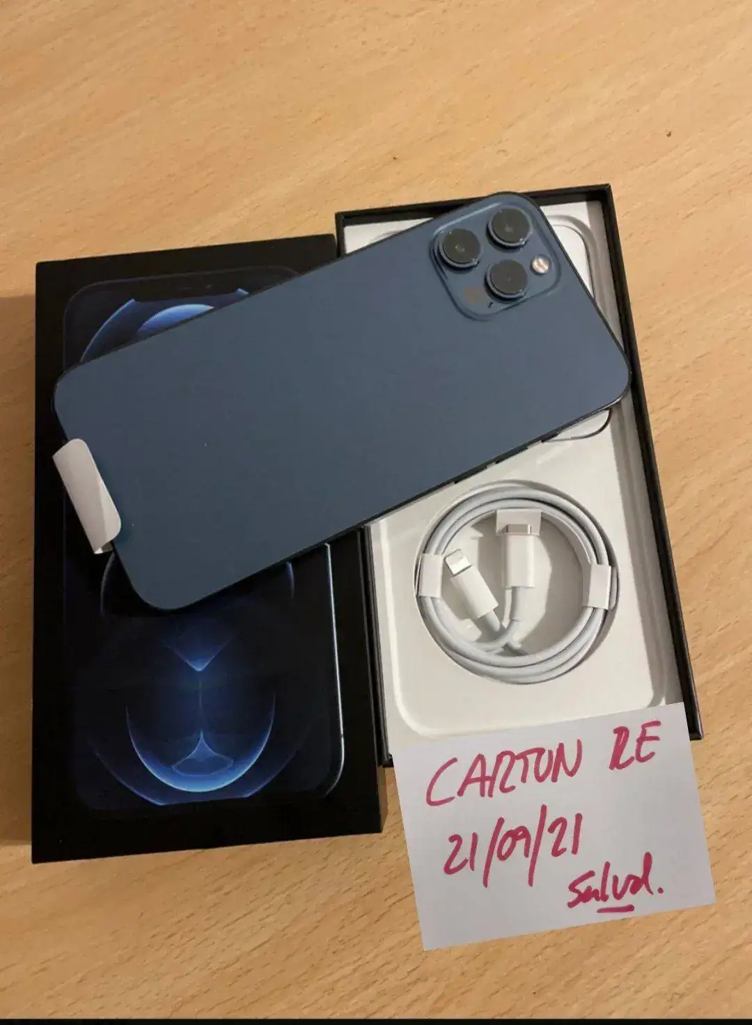 Buenos días, con permiso de la moderación, pongo en venta este iPhone 12 pro max de 256GB, color azul y en un estado absolutamente de reestreno. Se entrega factura de compra y tiene por delante 15 meses de garantía.