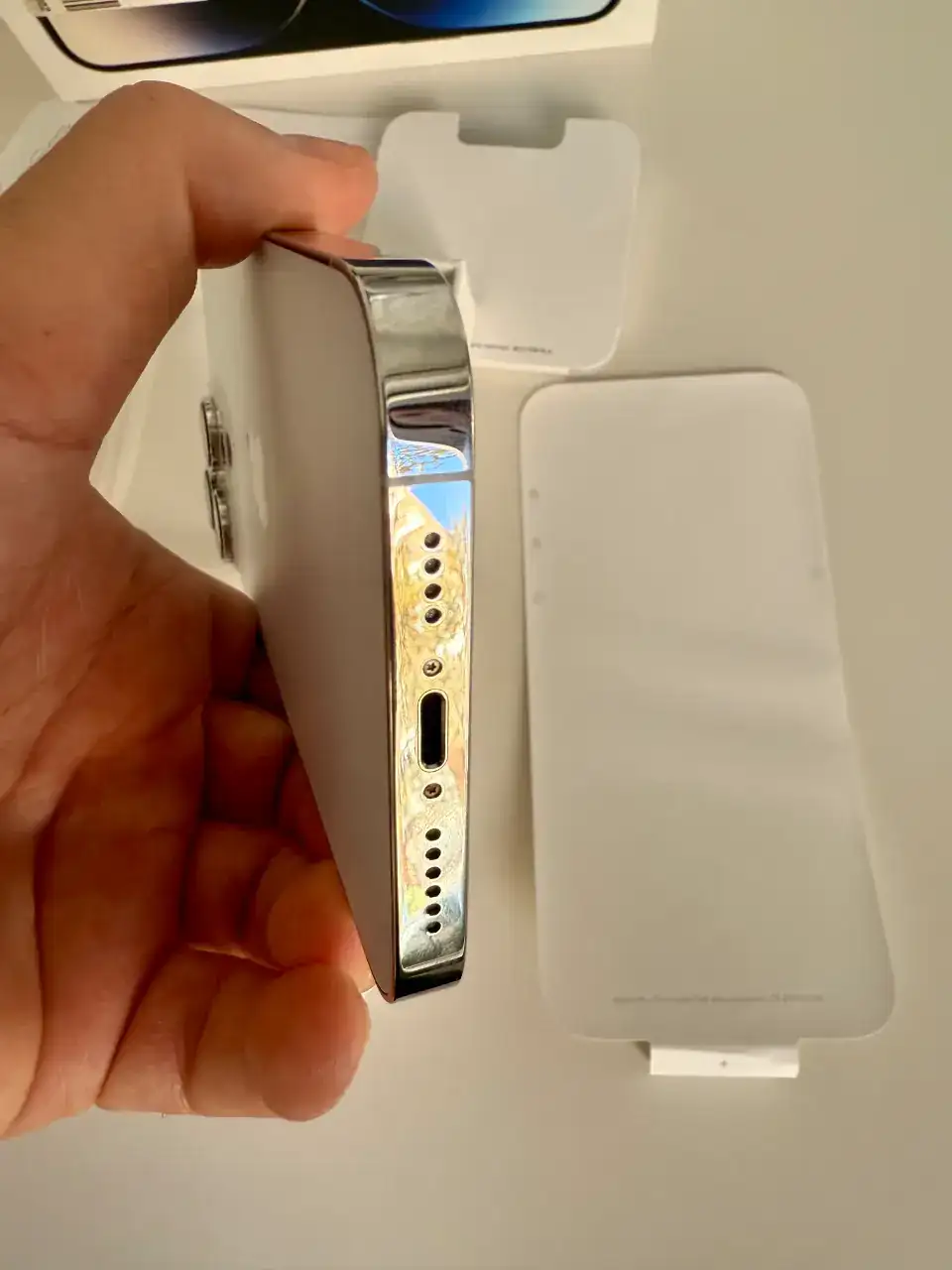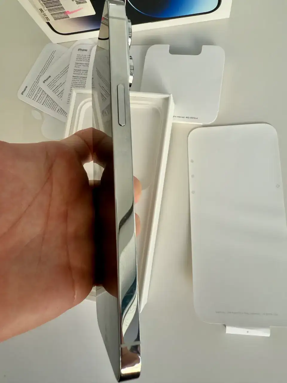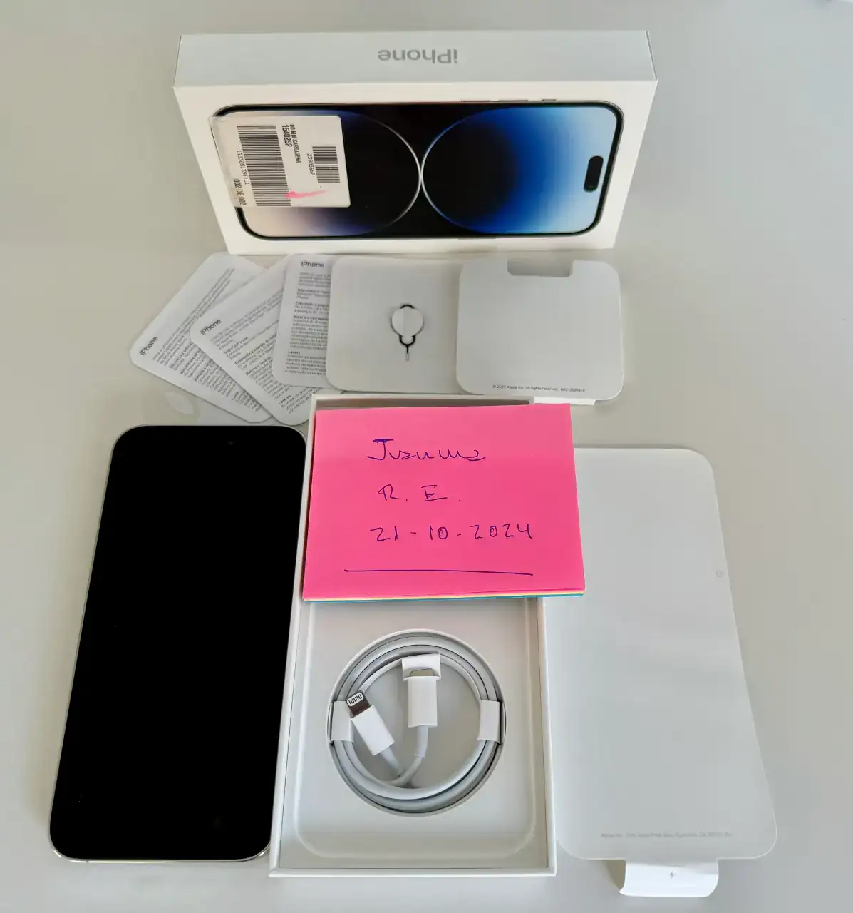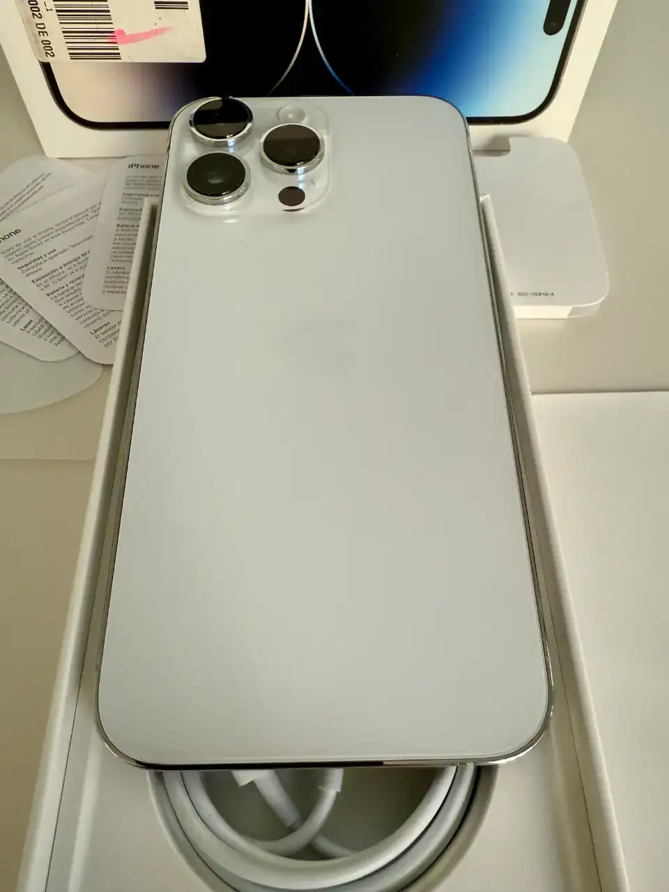 - Un iPhone 14 Pro Max de 128 gigas, color blanco en perfecto estado, por cambio de terminal. Es mío, comprado nuevo a finales de 2022 (no se precisar la fecha exacta).