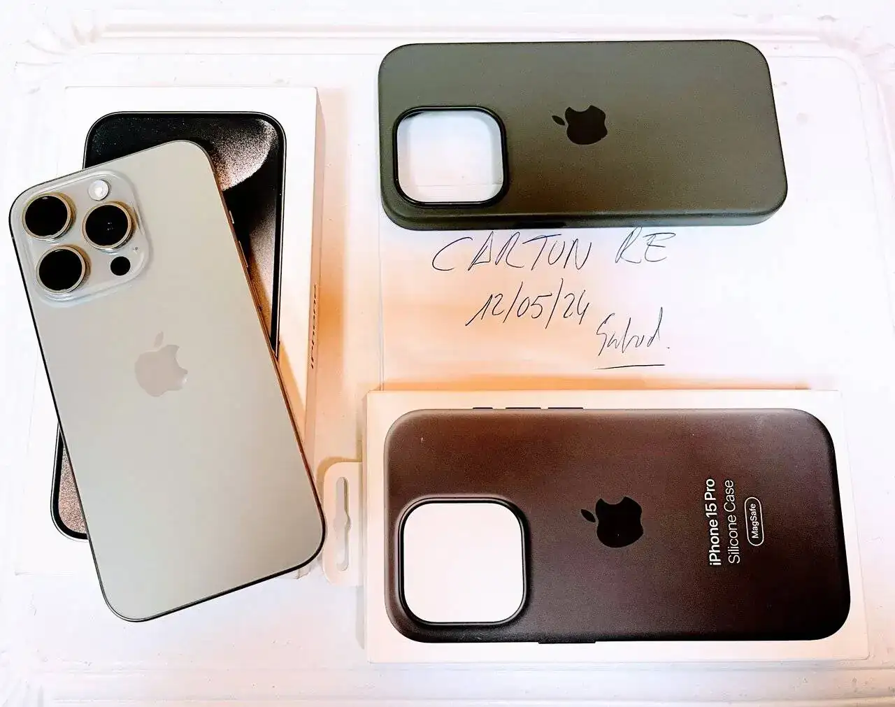 Buenas tardes, con permiso de la moderación, pongo en venta este maravilloso iPhone 15 Pro, en color titanio natural. Dispone de 256gb, estado impecable, batería al 100%. Garantía Apple hasta 29/11/24.