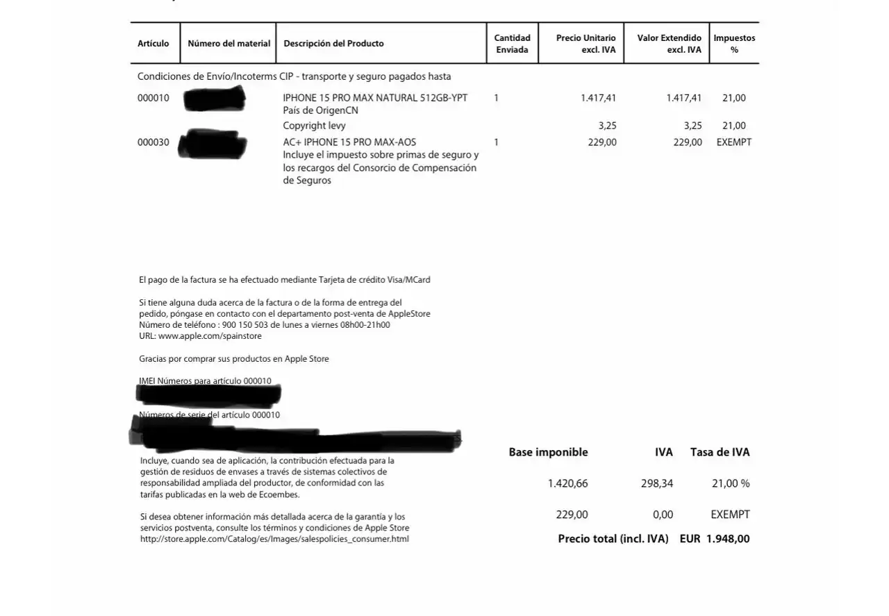 Pues lo dicho Iphone 15 Pro Max de 512 GB. y Applecare durante 2 años. Saludos.