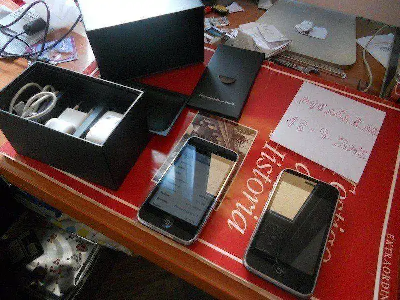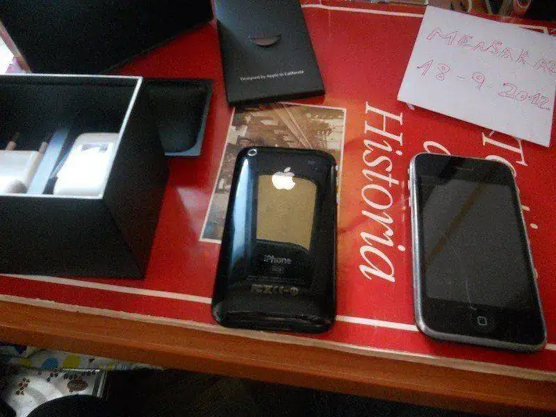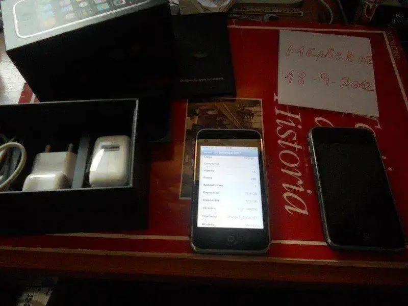 Lo envio con su caja, cargador, cable de datos y alguna carcasa trasera de regalo, ademas enviaria otro iPhone 3G negro bastante usado y que no enciende pero que puede servir perfectamente para piezas
