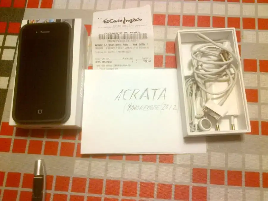 VENDO ESTE IPHONE 4S MOVISTAR, LA FACTURA DEL CORTE INGLES, TIENE SUS RALLITAS TRASERAS, PERO MI MUJER LE HA PUESTO UN FUNDA ESPECIAL MUY BONITA, VA CON SU CAJA, Y EL CONTENIDO HABITUAL.