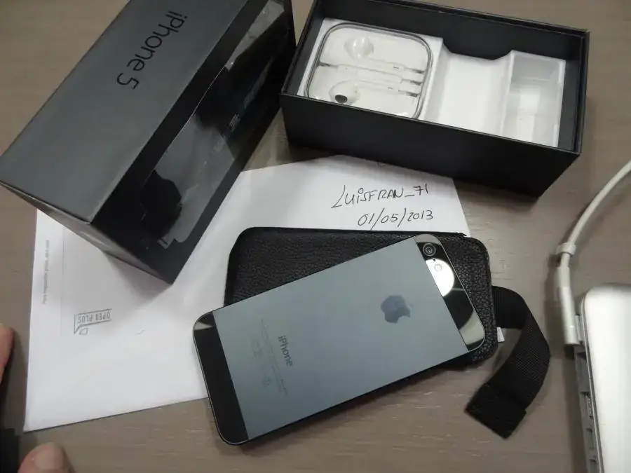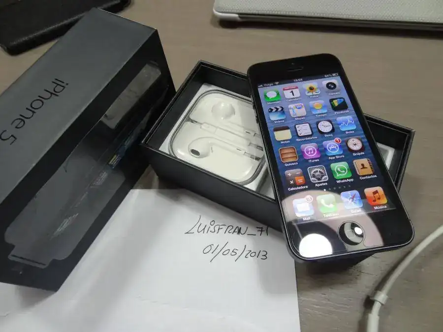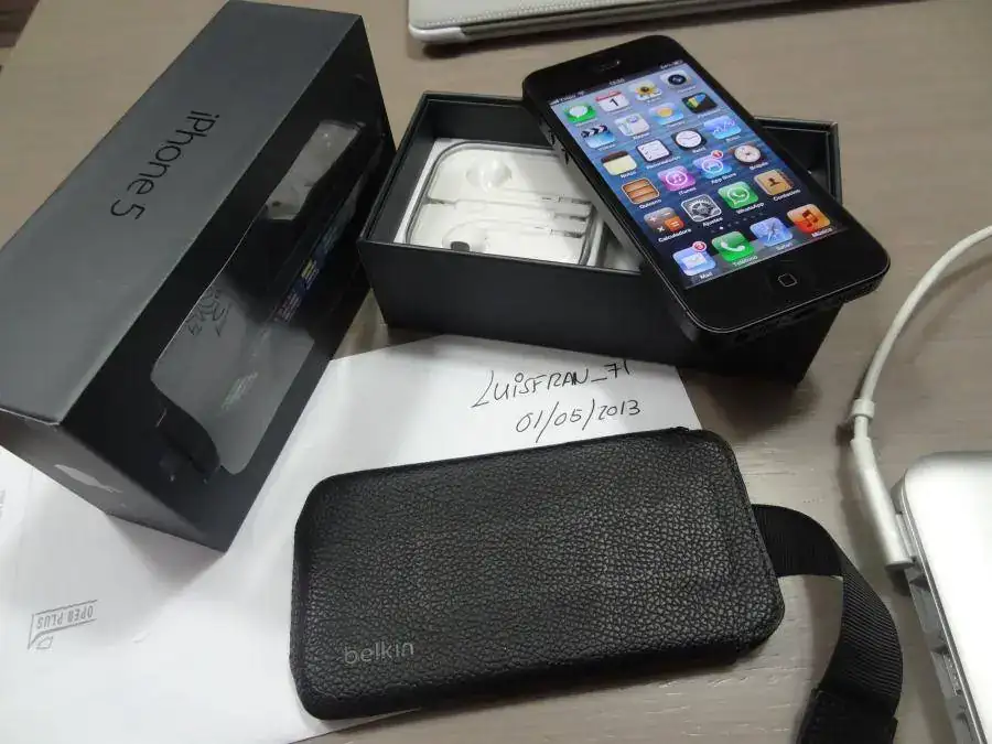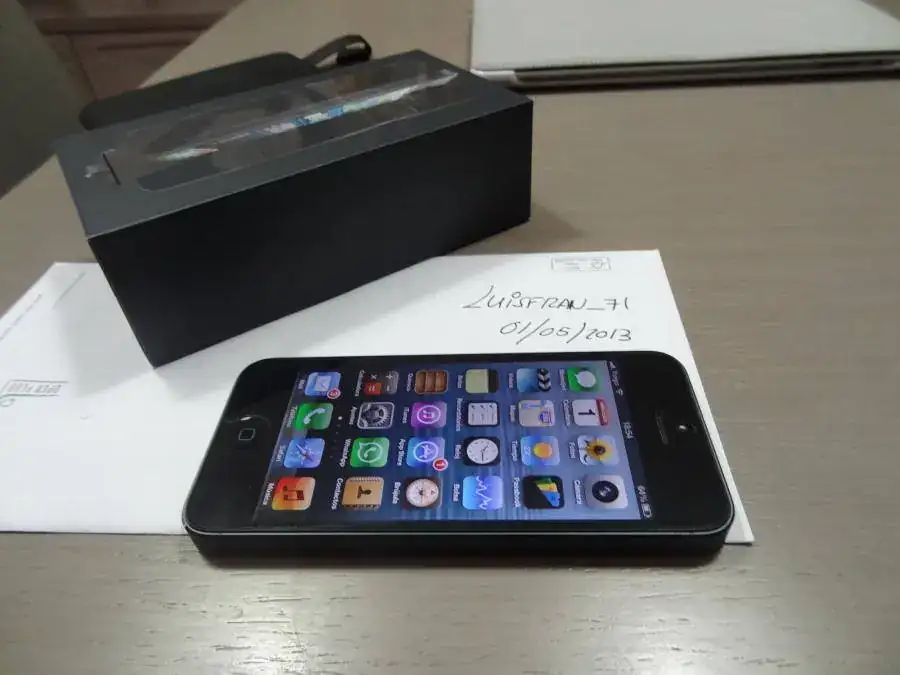Vendo este conocido smatphone . El iphone 5 negro de 16GB y libre de origen. comprado en la tienda oficial de Apple on line. Fue comprado en Enero de 2013. Le queda bastante garantia. Se entrega con todo, caja , auriculares sin abrir, factura (669€) y funda polipiel belkin. La pantalla tiene protector de plastico.