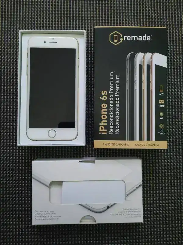 Hola, en esta ocasión, saco para venta por acumulación de terminales, un iPhone 6s, color dorado de 64 Gb, “Reacondicionado Premiun, tienda The Phone House“ comprado por mi en diciembre. Cuenta con un año de Garantía y todo lo que se puede ver en las fotos, accesorios sin usar y el móvil usado 2 días se encuentra en perfecto estado, sin roces, golpes ni rayas, Batería al 100%, lo dicho como nuevo.