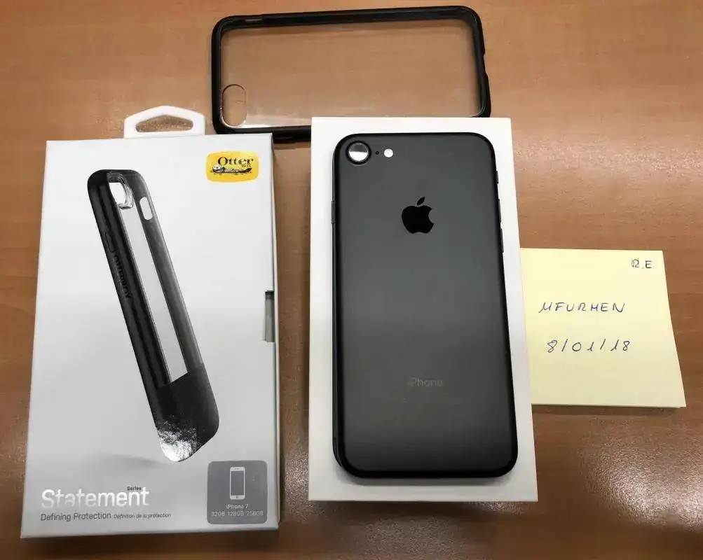 Vendo IPhone 7 de 128 GB en negro mate, impecable, en perfecto funcionamiento y sin roces ni golpes, ya que siempre se ha llevado con cristal protector y las dos fundas que incluyó de regalo (soy un maniático del cuidado). Está comprado a finales de octubre 2016 en El Corte Inglés, con lo que le queda casí un año de garantía. Se incluye factura de compra. Se entrega en su caja original con toda su documentación, cargador y cable y los auriculares absolutamente nuevos y sin estrenar junto con su adaptador jack.