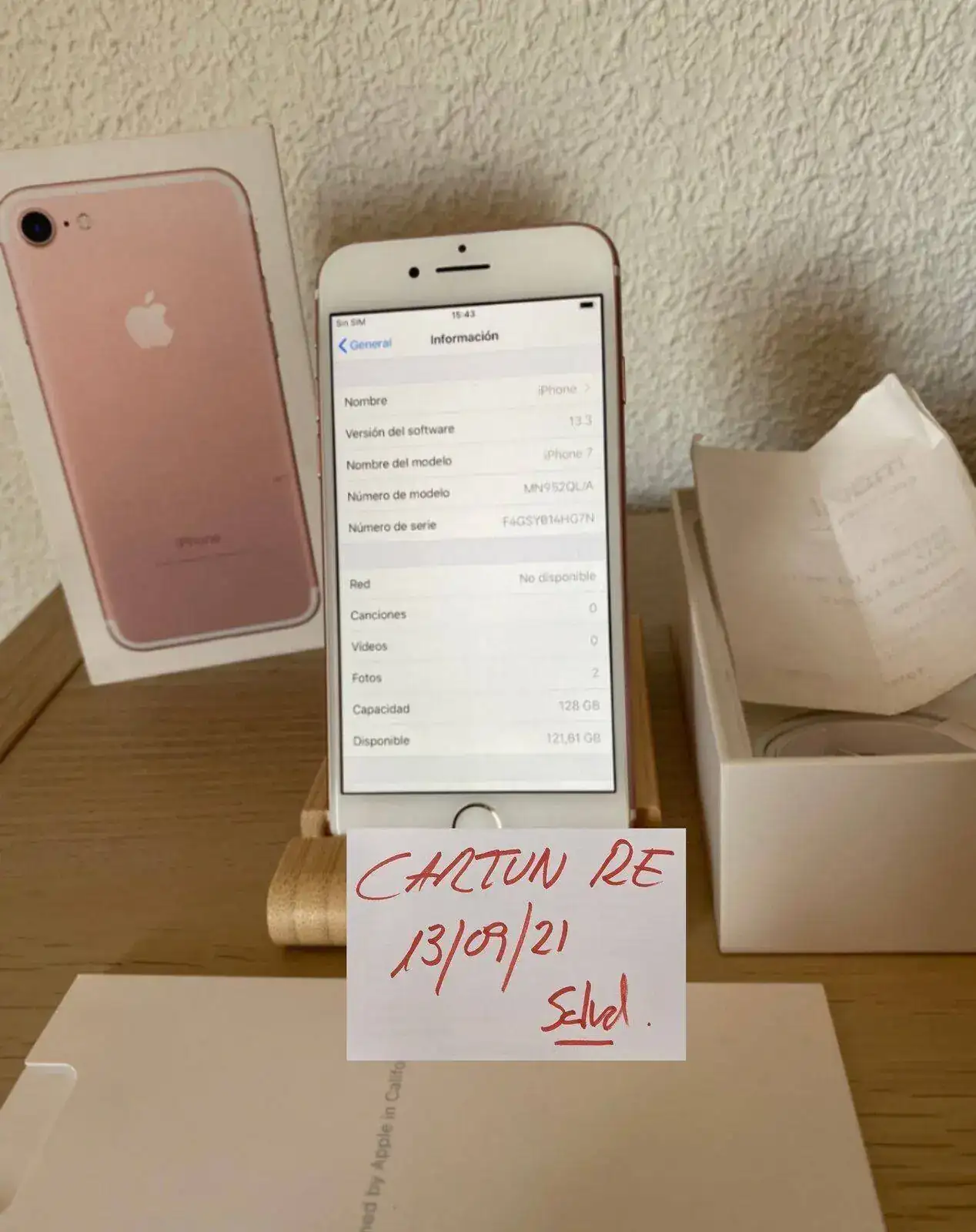 Buenas tardes, con permiso de la moderación, pongo en venta este iPhone 7, color rosa, perfecto estado, batería 100%.