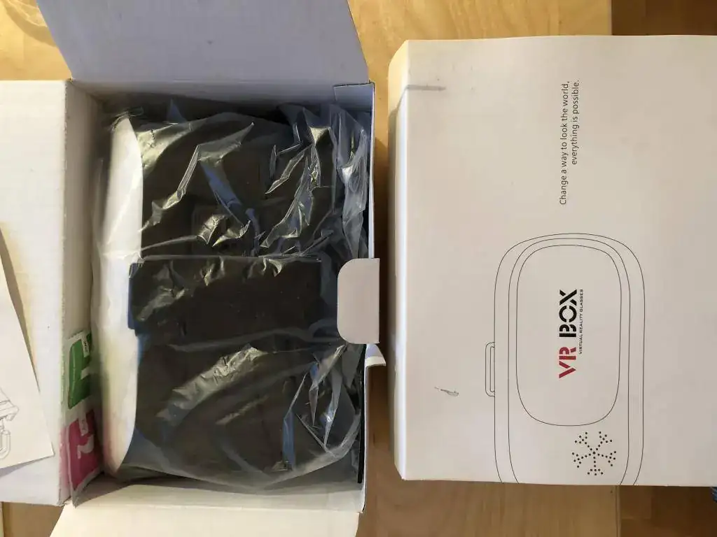 Regalo una gafas de realidad virtual y funda Apple roja.
