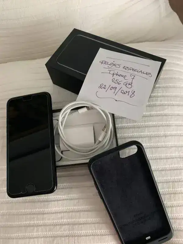 Buenas noches, por cambio a nuevo modelo vendo Iphone 7, color negro, 256 GB, adquirido por mi en E.C.I. en noviembre de 2.016 , el terminal está usado moderadamente y su aspecto externo es igual que nuevo, tiene un protector de pantalla de vidrio templado desde el primer día y siempre usado con una funda Apple Smart-Battery, de la que se ha alimentado el 90% de su tiempo de uso, la que acompaña al móvil se la puse en enero de este año al sustituir la primitiva por una cuestión meramente estética debido a una pequeña rotura en uno de sus cantos, tiene su pack completo, auriculares sin uso, cargador y embalaje.