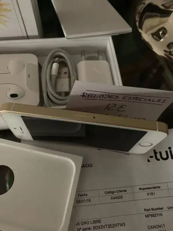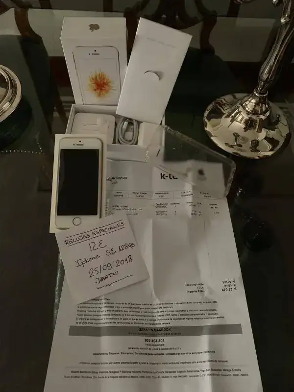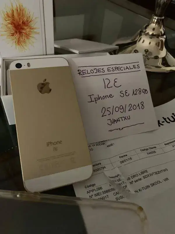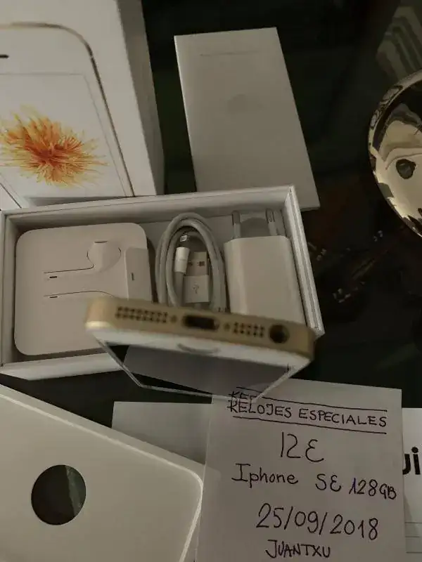 Saco a la venta Iphone SE color oro rosa y blanco de 128 GB de capacidad, adquirido por mi el 08/01/2018 en K-Tuin ( adjunto Fra. ) en un estado de conservación y funcionamiento impecable, prácticamente a estrenar, usado muy poco y con 15 meses de garantía vigente, lleva puesto el protector de pantalla de vidrio templado una funda translucida de plástico aeronáutico ( eso me contaron ) , con su set original completo incluidos auriculares sin estrenar, cable-cargador y papeles; lo saco a la venta en 350,- € con gastos de envío a la península incluidos , interesad@s podéis contactar por privado para cualquier duda ó aclaración ó también al móvil : 648 26 12 89 Washapp ( Juantxu )