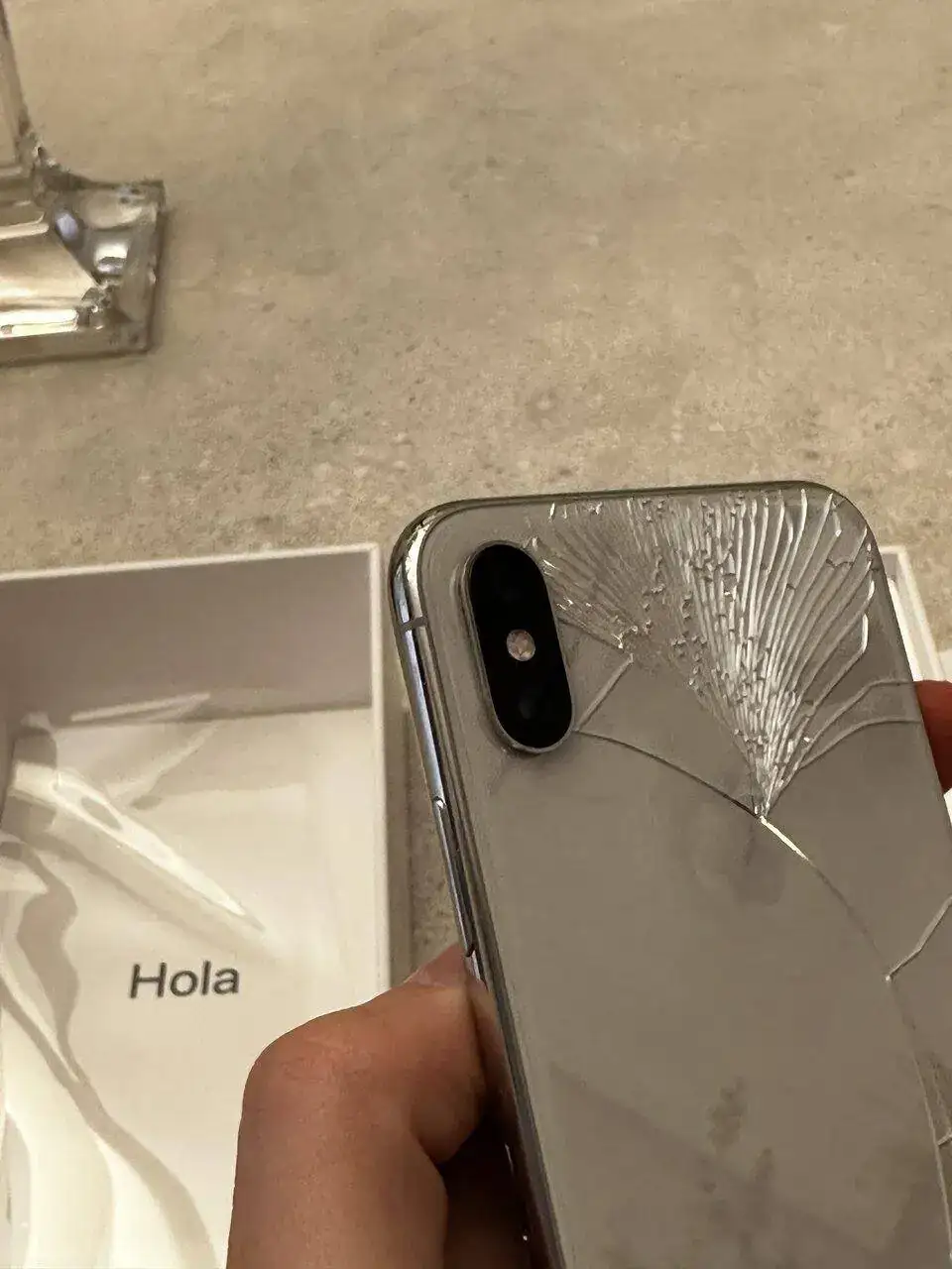 Como veis tiene el cristal trasero roto, me paso al mes de estrenarlo, lo llevaba sin funda y al sentarme se me resbaló del bolsillo del pantalón y al suelo… No afecta en nada a la carga inalámbrica, es solo estetico. Pero con funda no se nota.