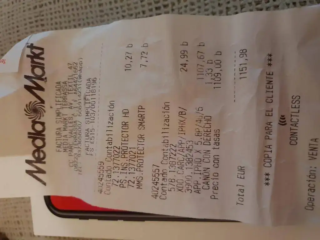 Adjunto factura del Media Mark comprado el día 23/6/2018.
