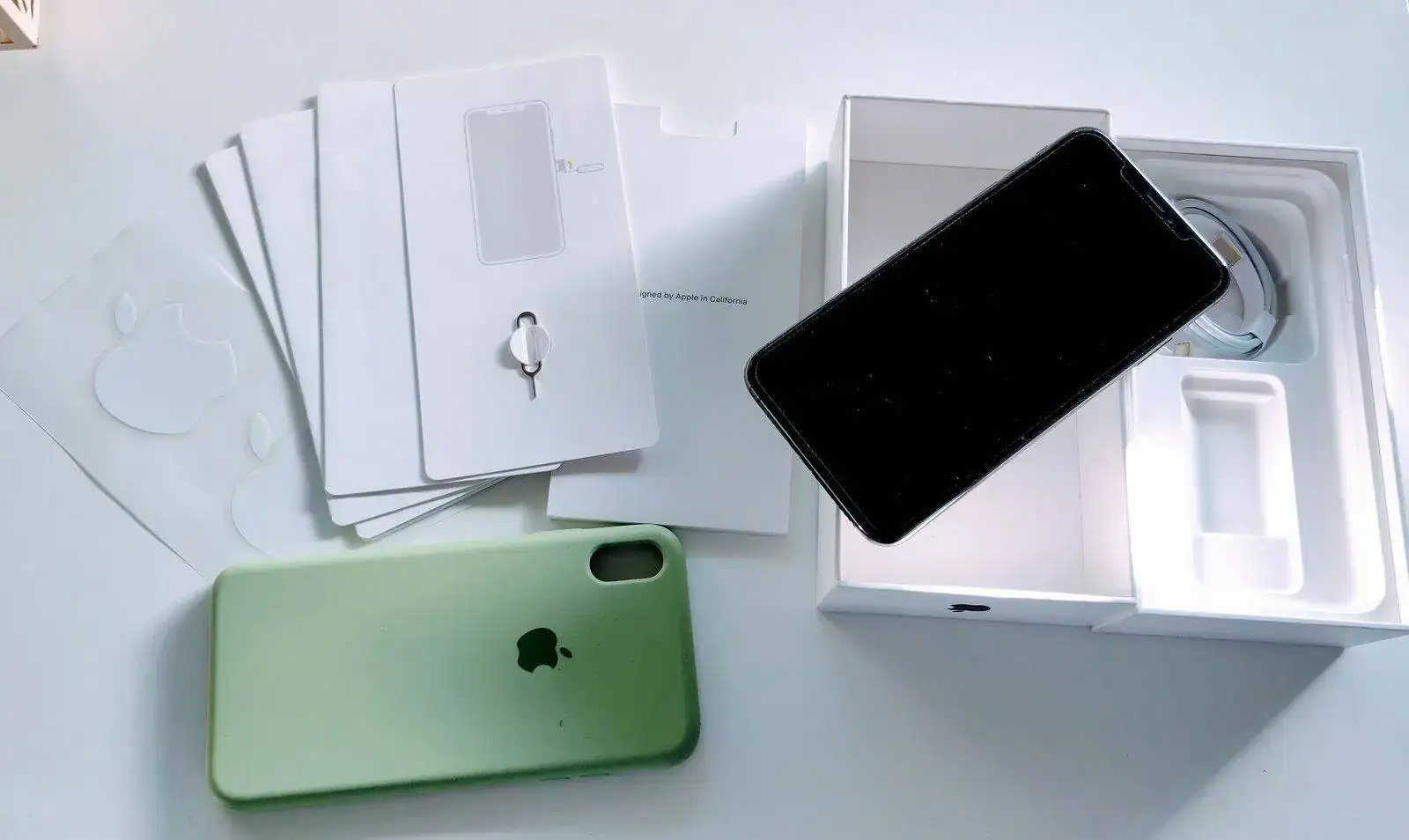 Incluye una funda de silicona verde Apple en perfecto estado.