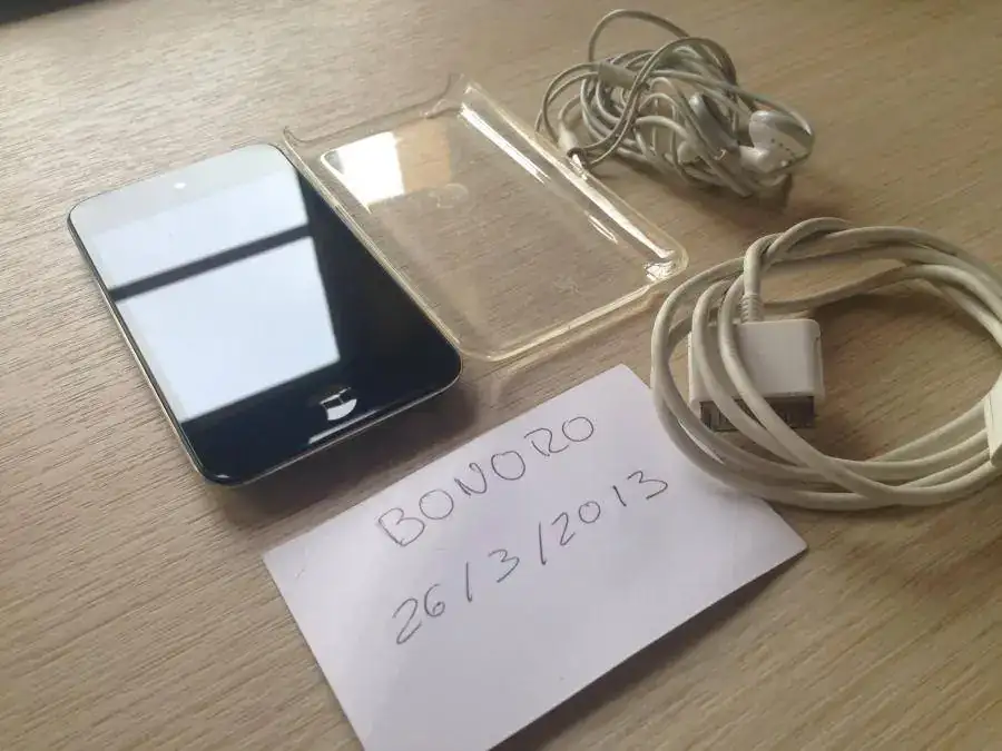 Saco a la venta este magnifico iPod que esta en muy buen estado y actualizado a ios 6, funciona a la perfección, siempre se ha usado con la funda transparente que incluyo, pese a ello como muchos sabréis la parte trasera de efecto espejo del ipod se raya con solo mirarla y debido a esto presenta rayas. Incluyo ademas de la mencionada funda el cable original de datos y los auriculares originales tambien.