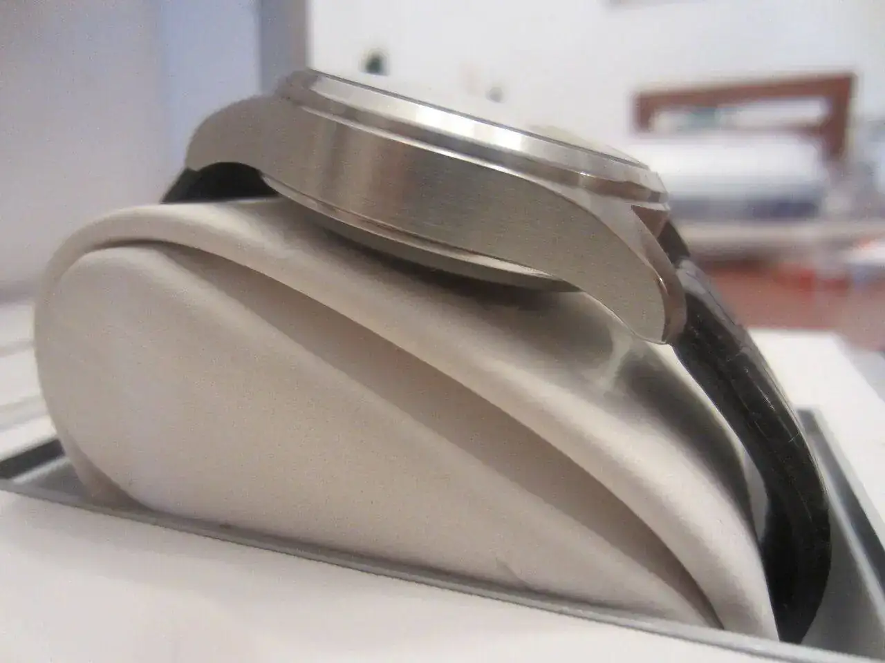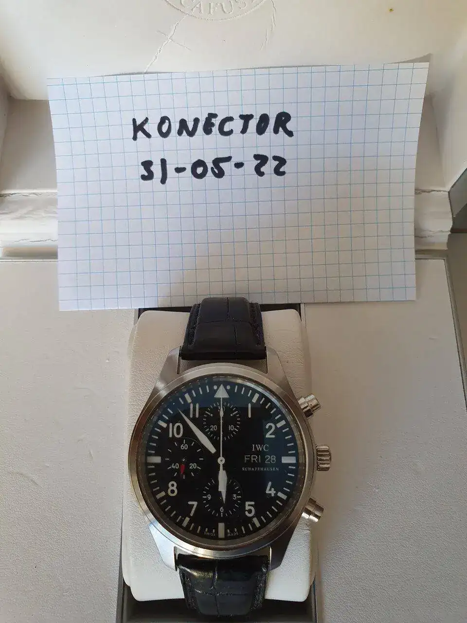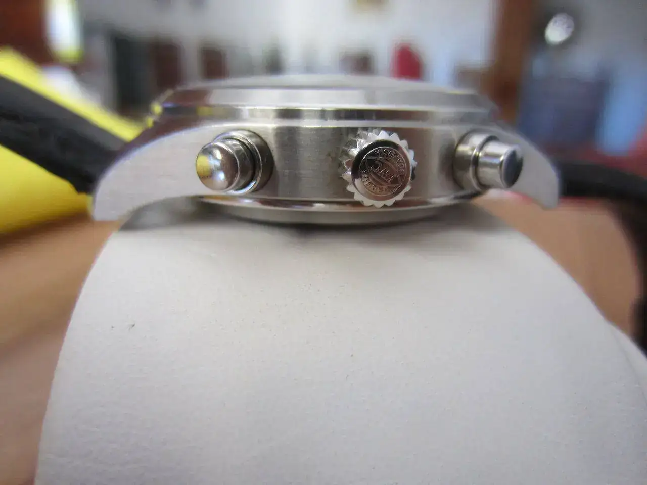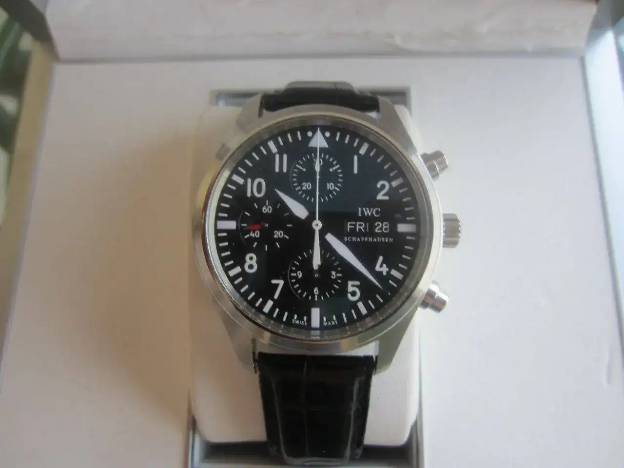 Hola, saco a la venta mi IWC Pilot Chrono , el estado es bastante bueno ya que apenas lo he usado desde que lo compré de 2ª mano en 2014, decir que tiene un pequeño picotazo apenas apreciable entre las 6h y 7 h , el resto , si acaso y por si no se aprecia en las fotos no tiene marcas de uso. La goma de la caja se puso pegajosa y lo limpié , se aprecia que no está perfecta. Si me interesa cambio por un Panerai negro de 44mm (no radomir).