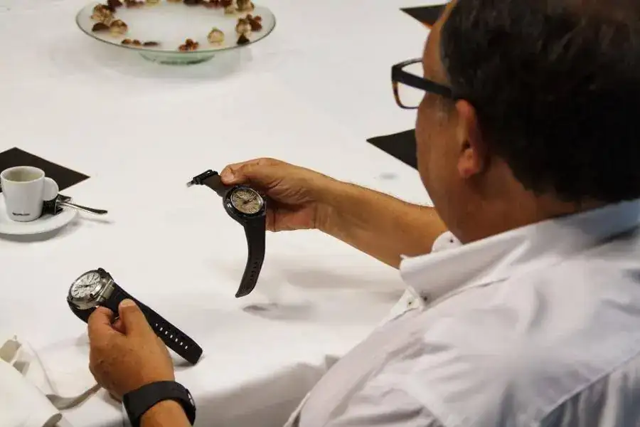 El carácter de manufactura y la ingeniería de vanguardia de AMG, encaja a la perfección con el espíritu de IWC y esto lo pudieron comprobar los invitados de Pere Quera Joiers y el Garatge Plana durante un almuerzo en el Restaurante Ca l’Enric de la Vall de Bianya, punto final del recorrido automovilístico y lugar de encuentro para comentar la experiencia del motor y compararla con la relojera. Uno de los puntos de coincidencia es en los materiales, y es que IWC cuenta con una larga tradición en la elaboración de materiales anteriormente desconocidos en el sector relojero, incluidos el titanio o la cerámica. Además la fuerte tendencia hacia la miniaturización exige habilidades especiales y capacidades de innovación presentes tanto en el mundo del motor como en el de la relojería. Es sabido que el deporte de motor sirve de campo de pruebas para las tecnologías que al fin y al cabo esto beneficia a muchos campos.