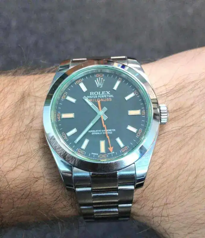 El Rolex Milgauss fue mi primer Rolex y ya desde antes de tenerlo pensé que era mi favorito de todos los modelos Rolex, pero me hice después con un Explorer I 214270 y le ha ganado la partida en mi corazón. Me parece el reloj perfecto. Además, ya tengo un Rolex Date del 89,que me ha dado mi padre recientemente, y un Sea Dweller cerámico a medias con él (pero que nunca se quita de la muñeca).